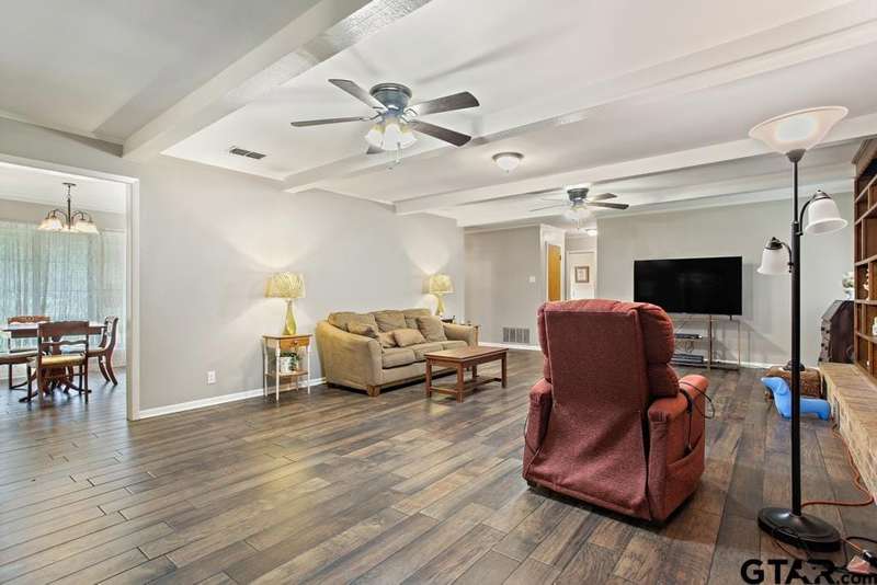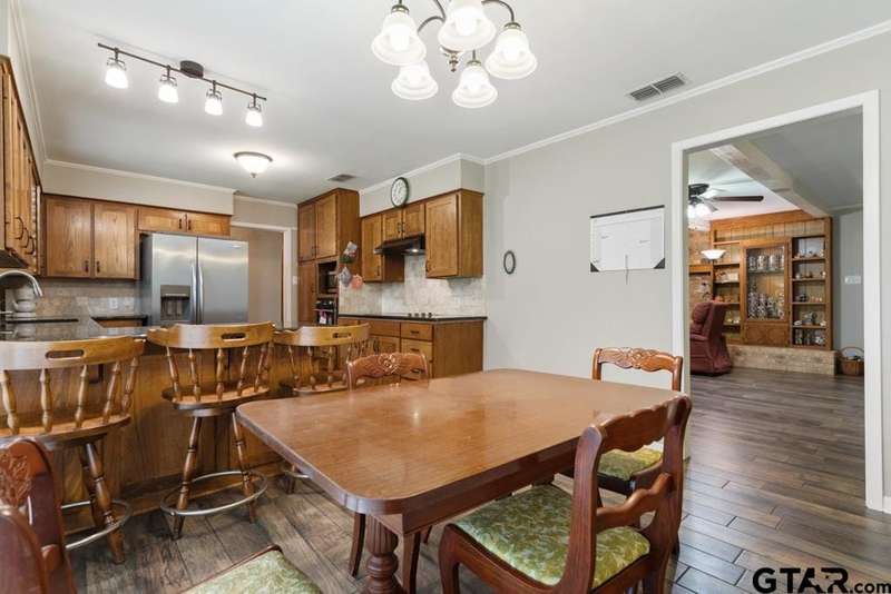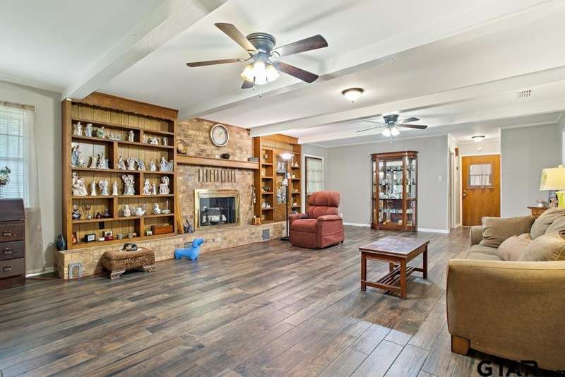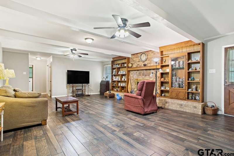 Tucked away on a quiet dead-end street in Flint, this charming 3-bedroom, 2-bath home offers peace, privacy, and space to roam on 2.2 beautifully wooded acres. With a huge wooded area behind the home, you'll enjoy serene views and a sense of seclusion, all while being close to town conveniences. Step inside to find a warm and inviting living room featuring custom built-ins and a classic brick wood-burning fireplace'perfect for cozy evenings at home. The kitchen offers plenty of cabinet space, a breakfast bar for casual dining, and opens to a bright dining area with large windows that bring in natural light and offer beautiful views of the surrounding trees. A sizeable laundry room provides extra storage space, making everyday living more functional and convenient. Whether you're looking to escape the hustle and bustle or enjoy nature right in your backyard, this home delivers a rare blend of comfort and tranquility in a beautiful East Texas setting.