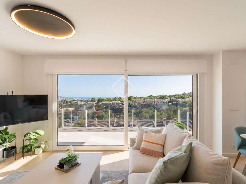 This impressive property, spread over four levels, stands out for its spectacular sea views that stretch from Calpe to Benidorm, passing through Altea and Albir. Each floor has been designed to maximize natural light and panoramic views, creating a unique and harmonious environment. At street level, we find the main floor , where we are welcomed by a spacious living-dining room with large windows that frame the sea like a natural landscape. The modern and functional kitchen blends seamlessly into the living space, and from here, we access a sunny terrace, ideal for enjoying al fresco meals. This floor also features a guest toilet. Above this floor is the solarium, a privileged space for relaxing, sunbathing, or enjoying the sunsets over the Mediterranean, thanks to its unbeatable orientation and privacy. The main bedroom area is located on the middle floor . The main bedroom has an en suite bathroom and access to a terrace with views, while a second bedroom and another full bathroom complete this floor, ideal for family or guests. The lower level houses a cozy living room, two additional bedrooms, and a full bathroom , making it the perfect space to accommodate more family members or to adapt as a separate area. From here, there's direct access to the private garden , ideal for enjoying the exterior in complete privacy. With a smart layout and open sea views, this property represents a unique opportunity to live in a privileged setting, combining spaciousness, design, and an exceptional location on the Costa Blanca.