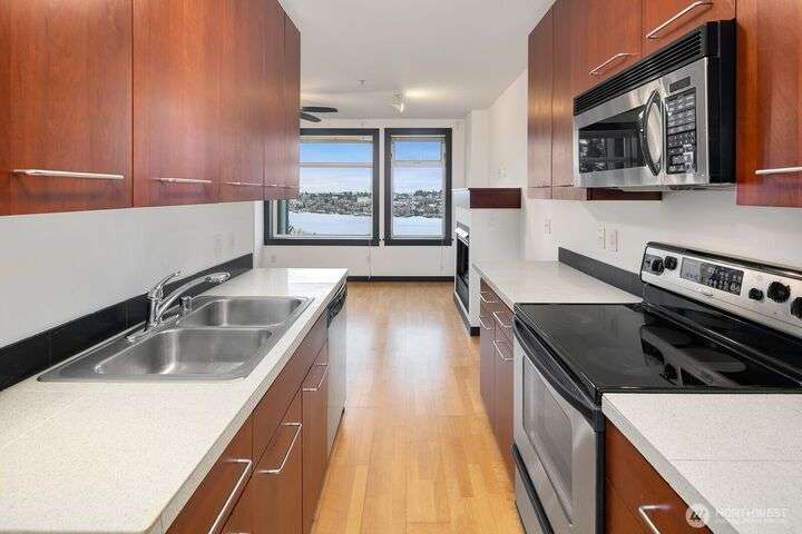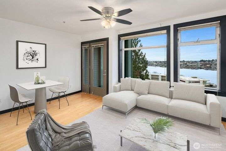 Welcome to The Portal Over Lake Union! This stylish 4th floor condominium w/ expansive & unobstructed views of Lake Union, Cascades, Gas Works Park & 4th of July fireworks! Enjoy this sun filled home w/over-sized windows, gleaming hardwoods, gas fireplace, balcony, and an open floor plan. Efficient kitchen w/ granite counters & ample storage. New interior paint, carpet & privacy shoji screen wall door between bdrm & liv area. Secure gar parking & storage. Entertain guests on the expansive rooftop deck w/ 360-degree views of all that Seattle has to offer. Easy access to Amazon, Facebook, Google, South Lake Union, Expedia, Fremont, Seattle Center & Space Needle, Chihuly Gardens, Cap Hill & Downtown. No Rental Cap/50%rented/Min 7day rental.