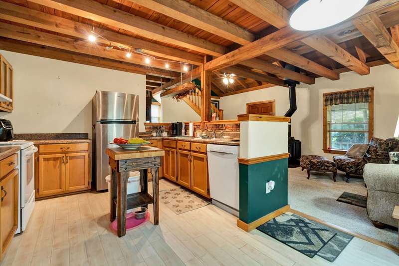 Charming Log Cabin Retreat on Nearly One Acre. Welcome to your dream getaway! This 2-bedroom, 1.5-bathroom log cabin sits on just under an acre and offers the perfect blend of rustic charm and modern comfort. Enjoy peaceful mornings on the expansive covered front porch that wraps around the side of the home, or unwind in the evenings on the screened-in side porch overlooking the serene, park-like setting. Inside, the open-concept layout showcases beautiful log finishes and a cozy living room centered around a wood-burning stove?perfect for chilly nights. The kitchen features a breakfast bar, a quaint breakfast nook, and direct access to the screened porch, making it ideal for entertaining or relaxing with nature. The main level includes a full bathroom, while the open loft upstairs provides a second bedroom and a convenient half bath. The finished walk-out basement offers additional living space, currently used as a second sleeping area with a full bathroom, large closet, and a generous storage room. Step out the glass doors to a second covered patio featuring a large hot tub?your personal oasis! Outside, the property is beautifully landscaped with mature trees and includes an one-car detached garage and a charming log outbuilding for additional storage. Located just 20 minutes from Ocoee whitewater rafting, Copperhill, and Tellico Plains, and about 40 minutes from Blue Ridge and Murphy, NC, this property is perfect as a full-time residence, vacation home, or rental investment. Don't miss this unique opportunity to own a piece of mountain paradise!C