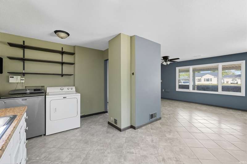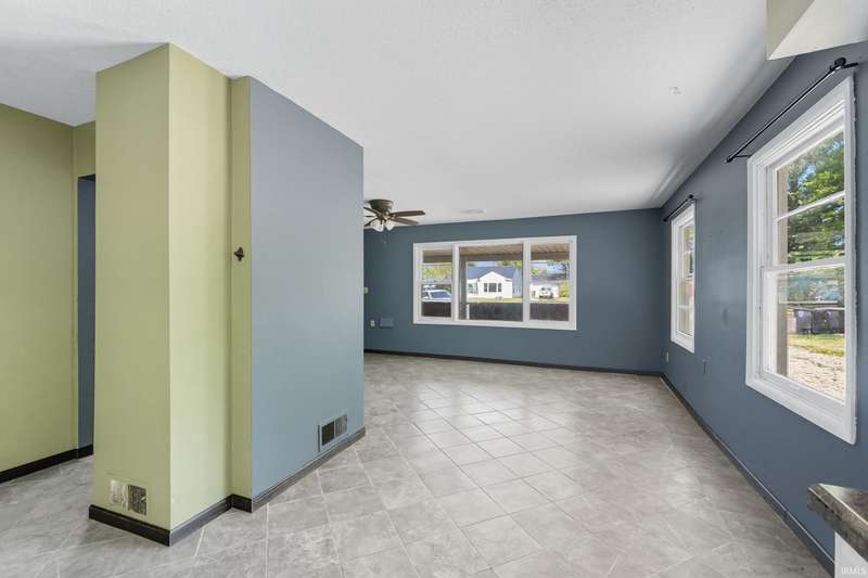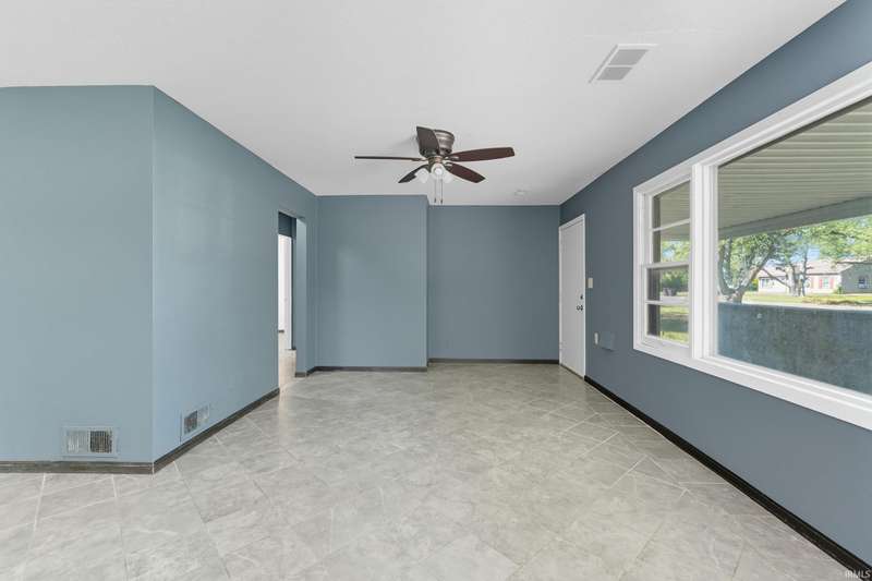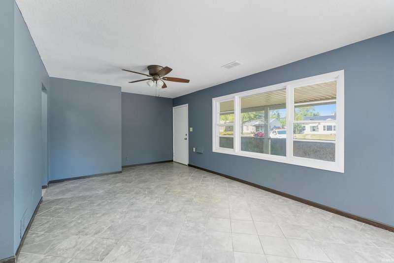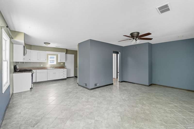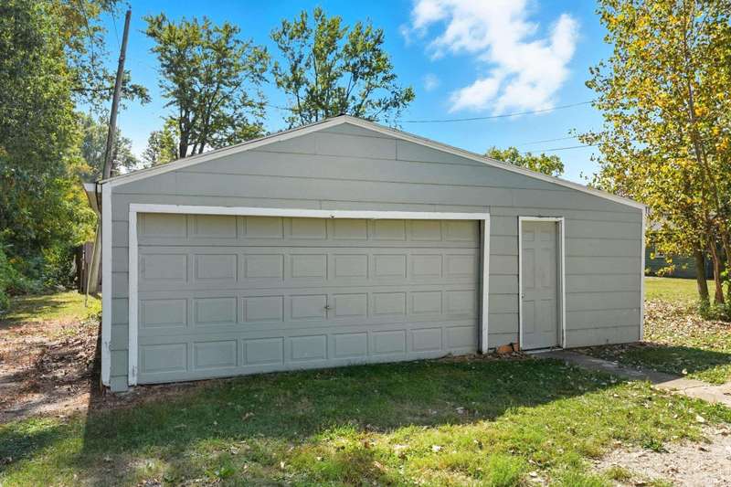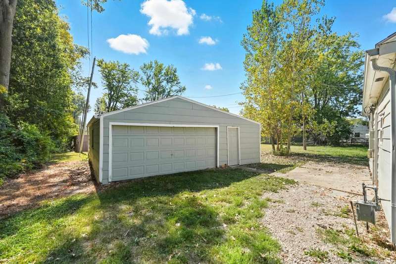 This well-maintained 2 bedroom, 1 full bathroom ranch offers comfortable living with a functional open-concept design. The spacious living area flows seamlessly into the kitchen, making it ideal for everyday living and entertaining. A private drive leads to the oversized two-car garage, providing ample parking and storage space. The large lot and cul-de-sac like location give this home added privacy and outdoor potential, while the generous front porch offers a welcoming spot to relax. Interior features include tiled floors throughout and newer kitchen appliances, adding both convenience and style. With its open layout, oversized lot, and excellent location, this home is ready for its next owner.
