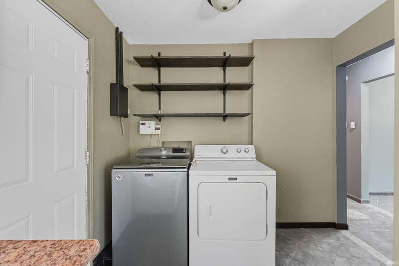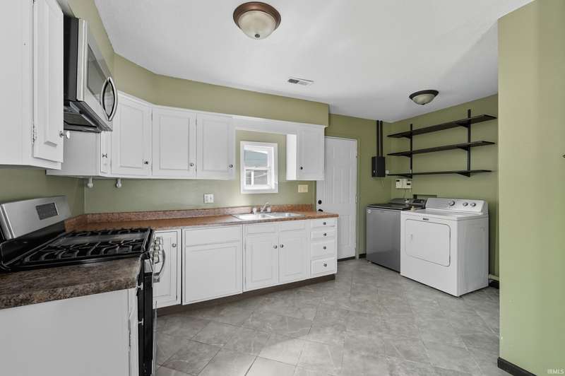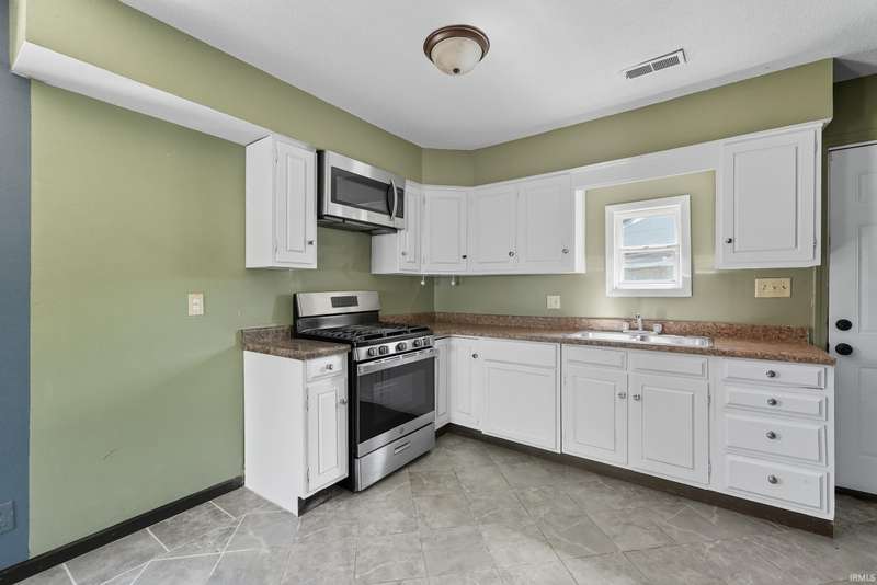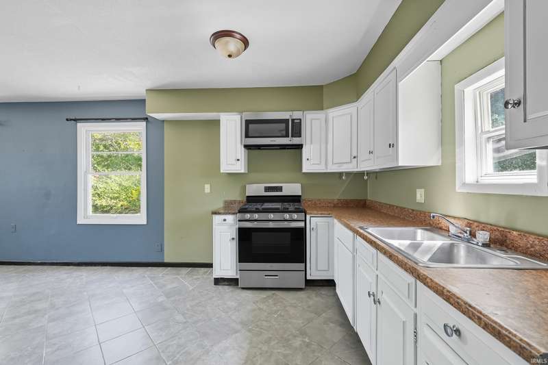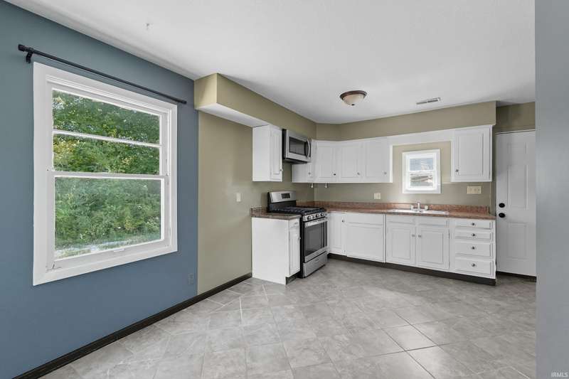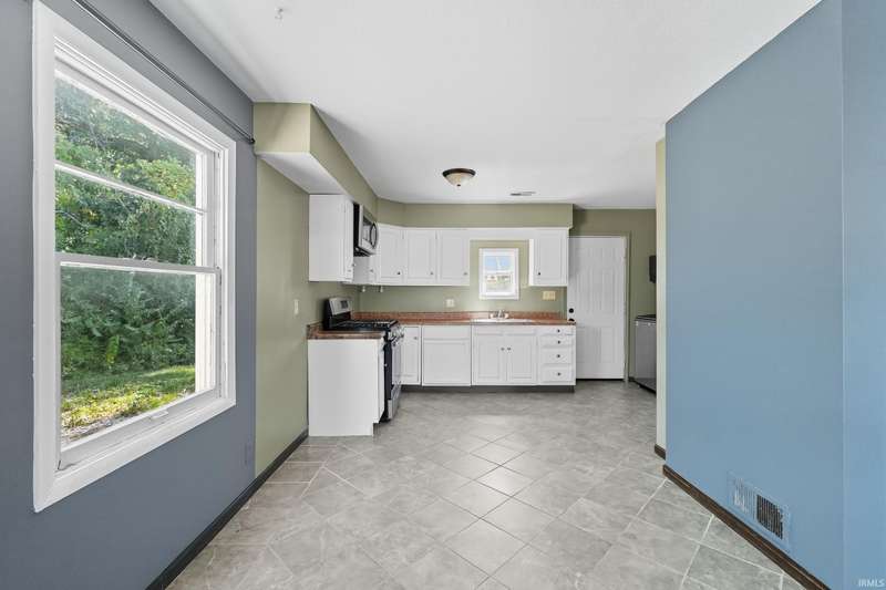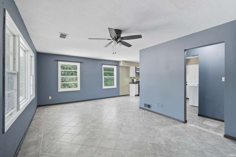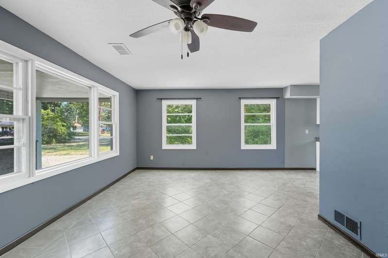 This well-maintained 2 bedroom, 1 full bathroom ranch offers comfortable living with a functional open-concept design. The spacious living area flows seamlessly into the kitchen, making it ideal for everyday living and entertaining. A private drive leads to the oversized two-car garage, providing ample parking and storage space. The large lot and cul-de-sac like location give this home added privacy and outdoor potential, while the generous front porch offers a welcoming spot to relax. Interior features include tiled floors throughout and newer kitchen appliances, adding both convenience and style. With its open layout, oversized lot, and excellent location, this home is ready for its next owner.