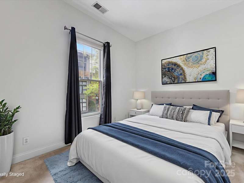 Welcome to this stunning 2-bedroom, 2-bathroom condo in the vibrant heart of Uptown Charlotte! This meticulously maintained 975-square-foot residence offers the perfect blend of modern elegance and urban convenience. Step inside to discover gleaming hardwood floors that flow seamlessly throughout the open-concept living spaces, complemented by abundant natural light that adds warmth and charm to the living room.The gourmet kitchen is a true showstopper, featuring polished granite countertops, sleek stainless steel appliances, a spacious island with an eat-in bar, and ample cabinetry- ideal for entertaining or quiet nights at home.Retreat to the spacious primary suite, where youll find an updated spa-inspired bathroom with chrome fixtures, a luxurious walk-in shower, and a modern double vanity. The second bedroom and full bath offer comfort and flexibility perfect for guests, a home office, or a roommate setup.Nestled in a prime Uptown location, this condo is just steps away from Charlottes best dining, nightlife, cultural attractions, and green spaces. Whether you're enjoying a morning coffee or exploring the bustling city streets, youll love calling this sophisticated condo your home.