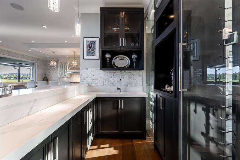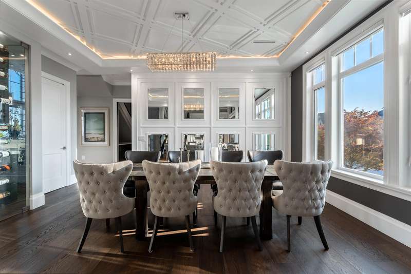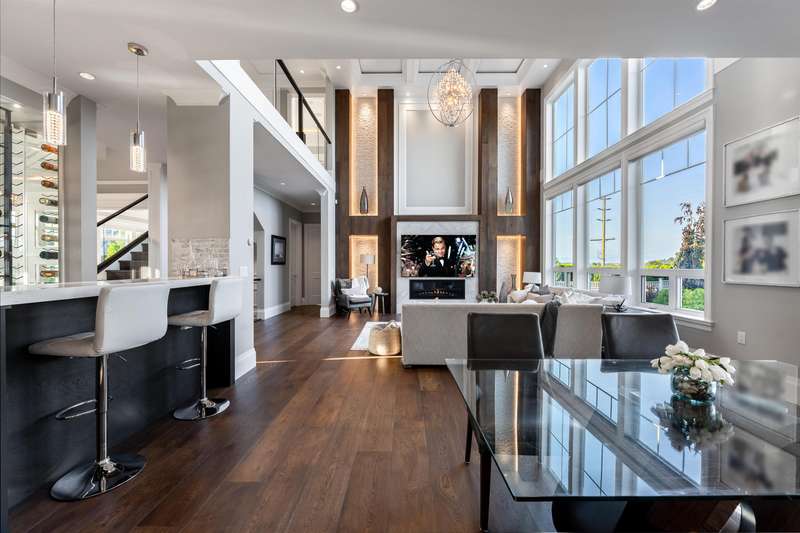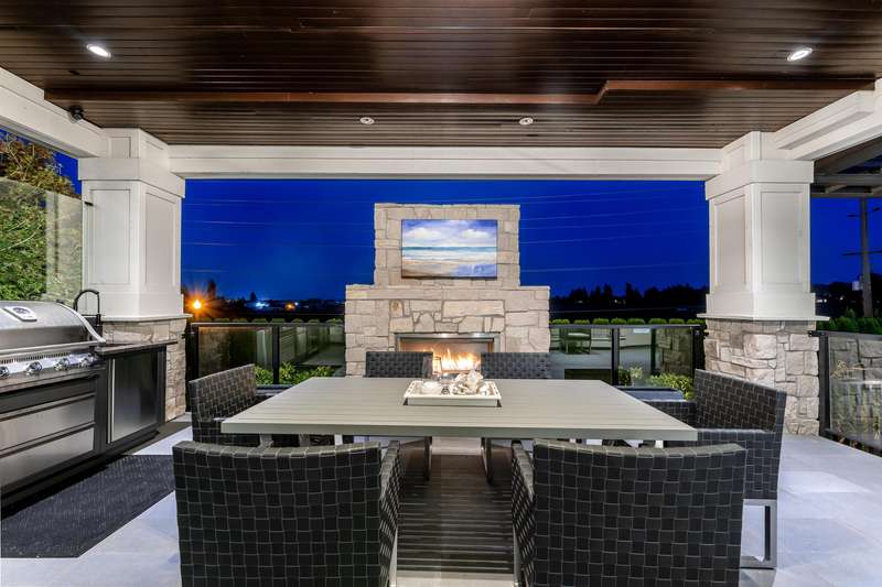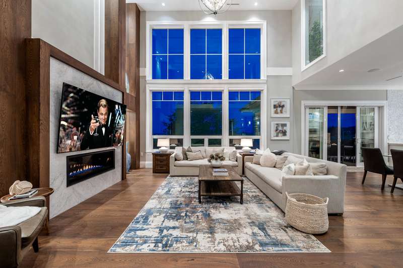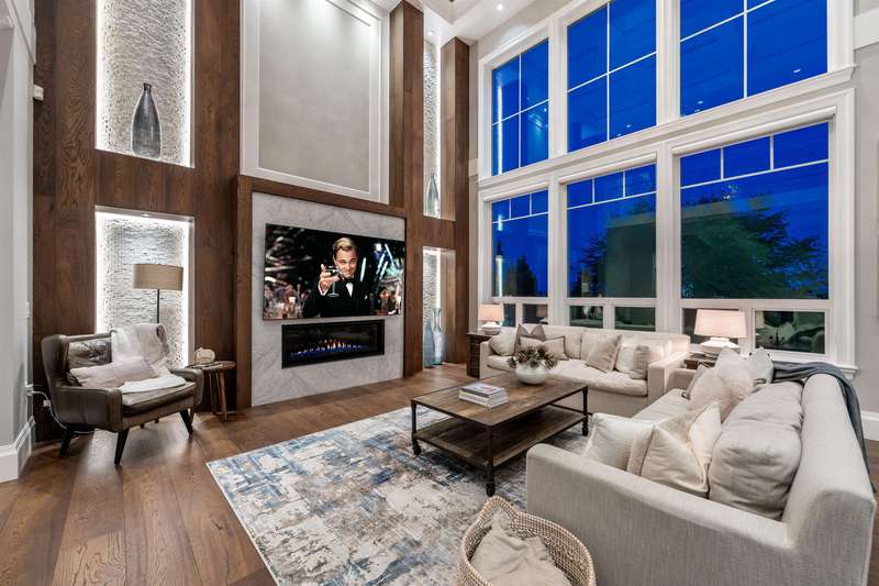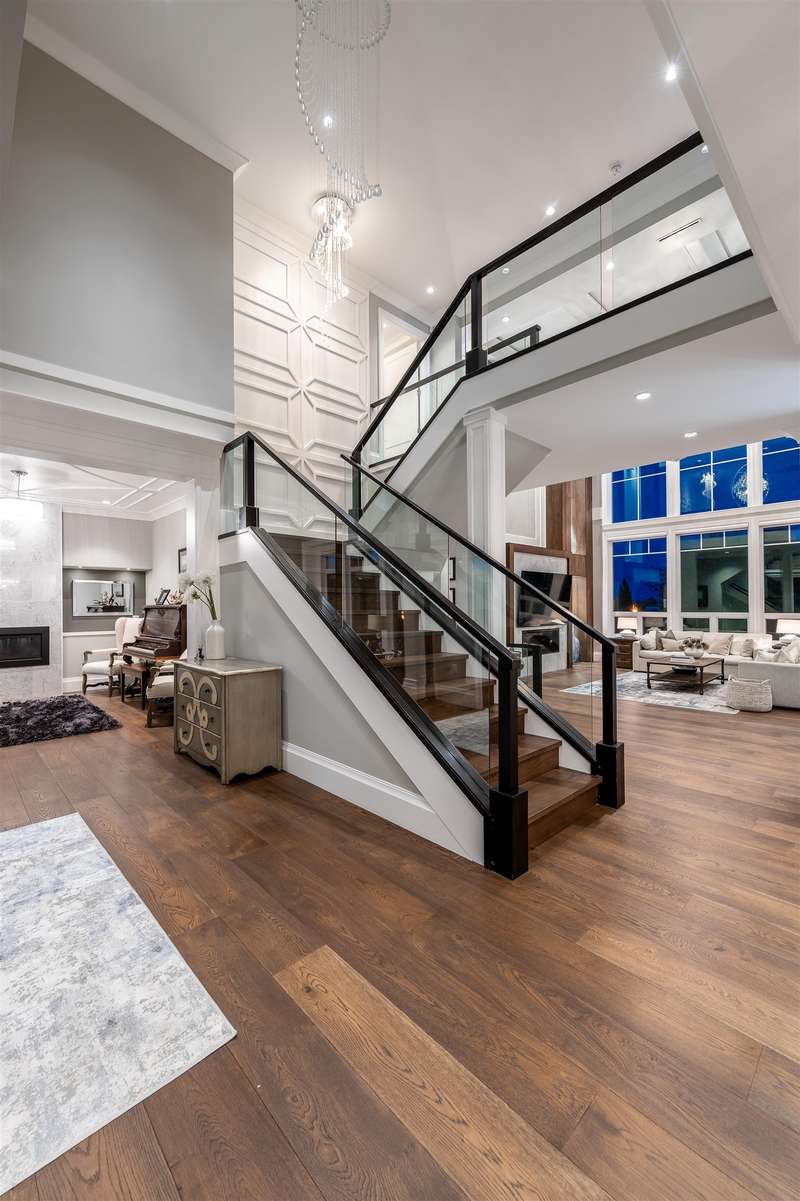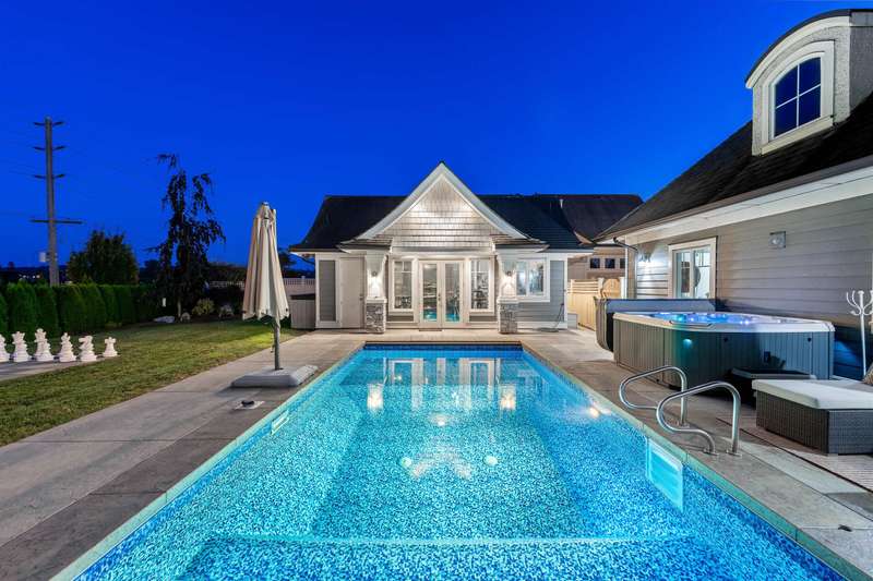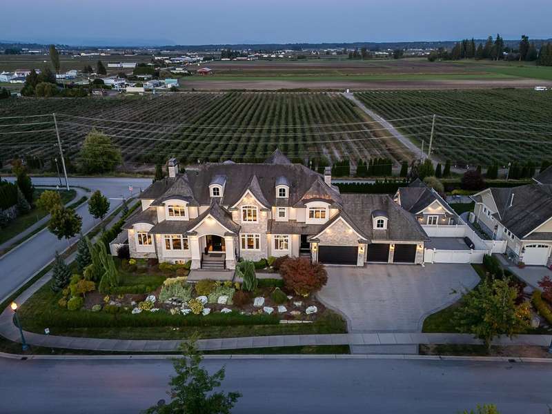 Luxurious Morgan Creek mansion situated on a beautiful and private street with every modern amenity desirable. Almost 9100 ft.² of living space on three spacious levels, this transitionally designed home is perfect for your family’s needs. Grand Foyer with cross-hall formal living in dining rooms, flows into the great room. Designer inspired kitchen with a wok kitchen and walk in pantry, and convenient wet bar for entertaining. One primary suite tucked away on the main floor, and a secondary primary suite above with 3 additional guest bedrooms. Lower level is finished with a guest wing, gym with sauna & steam, theatre, bar, and games room. Bonus detached studio, 4 car garage, in-ground pool, with a hot tub and so much more. Situated on a full half acre with mountain and farm views.