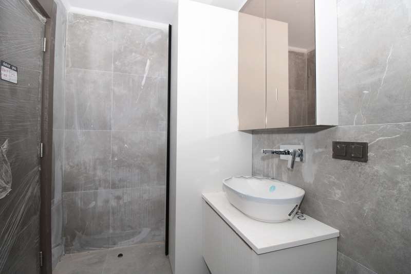 The 3-bedroom duplex apartments feature a living room, an open-plan kitchen, an en-suite bathroom, a dressing room, two shared bathrooms, and two balconies. Each apartment is equipped with a steel door, intercom, Bosch built-in appliances, air conditioning in every room, spot lighting, and a central satellite TV system.