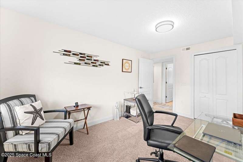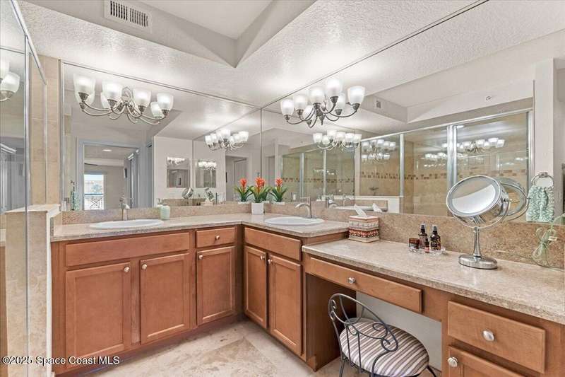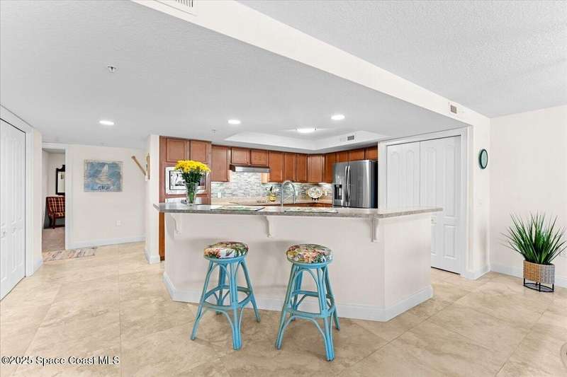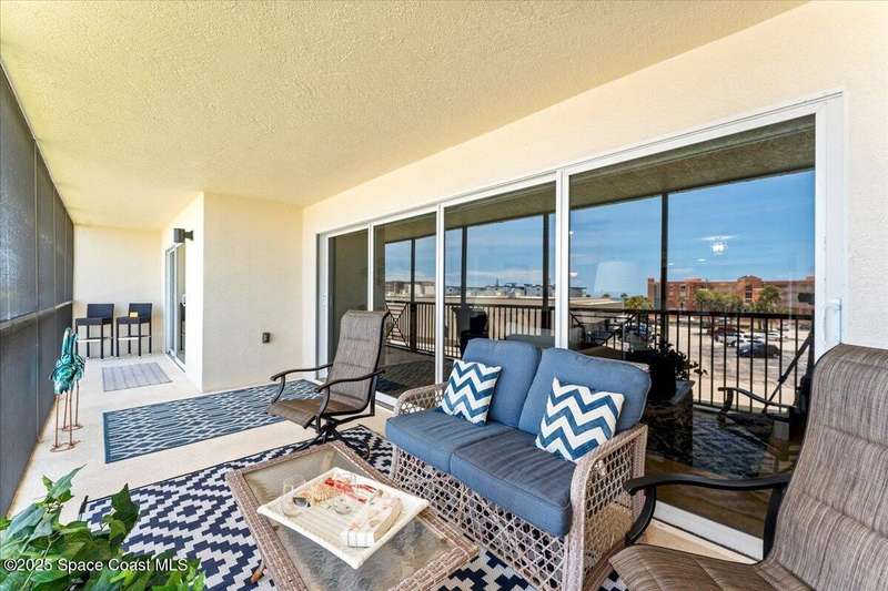 Come enjoy not 1, but 2 parking spaces that will blow you away in condo living... then experience effortless style and comfort in this partially furnished 3-bedroom, 2-bath condo located in the heart of Palm Springs. With a spacious open layout and elegant travertine tile throughout, this home is perfect for both relaxing and entertaining. Enjoy two assigned indoor spaces, assigned separate, semi-private garage spaces, a luxurious dual-head shower, custom electric blinds, a water filtration system, and exceptionally generous closet space. The screened-in balcony offers a tranquil spot to unwind and even catch glimpses of rocket launches. The community also includes dedicated bike storage, ideal for exploring the scenic surroundings. Some furniture is available for purchase.
