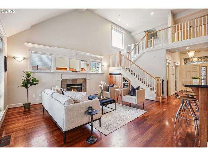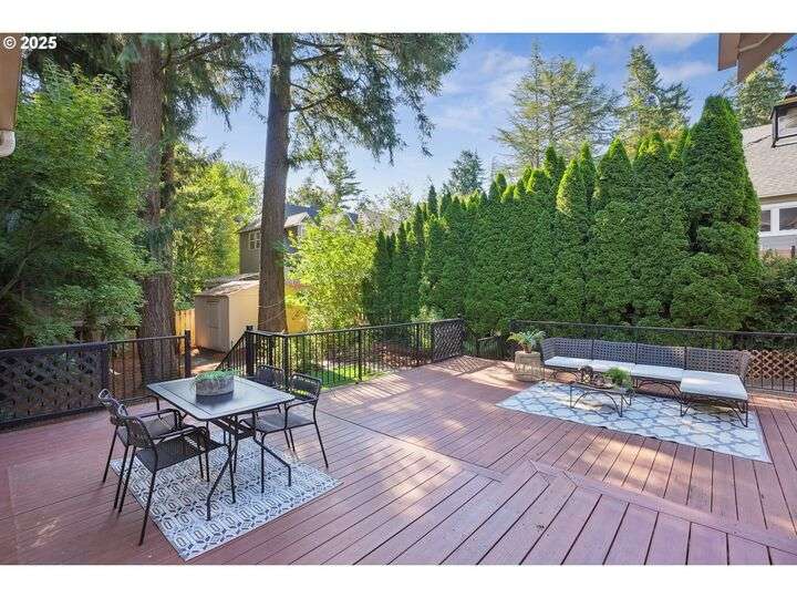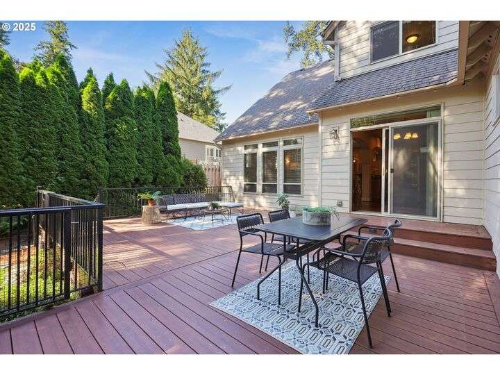 Could easily be a 6 bedroom home with its flexibility and is perfect for multigenerational living or large families. Welcome to this beautifully maintained, custom traditional home nestled in the highly sought-after Garden Home neighborhood. Backing to a lush green space, this home offers the perfect blend of elegance, functionality, and year-round serenity. Step inside to discover gleaming hardwood floors, soaring vaulted ceilings, and sun-drenched living spaces. The formal dining room features custom built-ins and a tray ceiling, perfect for entertaining. The spacious greatroom offers a cozy gas fireplace and flows seamlessly into the chef’s kitchen with granite countertops, stainless steel appliances, a gas cooktop, double ovens, and abundant cabinetry.The main level also includes a bright breakfast nook with slider access to the expansive custom decks, a half bath, a laundry room, and a private office or 2nd main level bedroom with French doors. The luxurious main-level primary suite boasts vaulted ceilings, a walk-in closet, and a spa-like ensuite bath with a jetted soaking tub. Upstairs, you’ll find a flexible loft space ideal for a 2nd office, workout area, or reading nook, along with two additional bedrooms, a full bath, and a generous family/media room, or what could be 4 bedrooms upstairs with a little work from a buyer. The backyard is an entertainer’s dream with composite decks, a hot tub, a whimsical treehouse, and a storage shed—all set against the tranquil backdrop of protected greenspace. Additional highlights include a 3-car garage, driveway parking for two more vehicles, and a premier location in the Ashcreek neighborhood—just minutes from the charm of Multnomah Village and Hillsdale’s cafes, shops, and bookstores. Don’t miss this rare opportunity to own a peaceful retreat with every modern comfort in one of SW Portland’s most desirable areas. [Home Energy Score = 4. HES Report at https://rpt.greenbuildingregistry.com/hes/OR10240362]