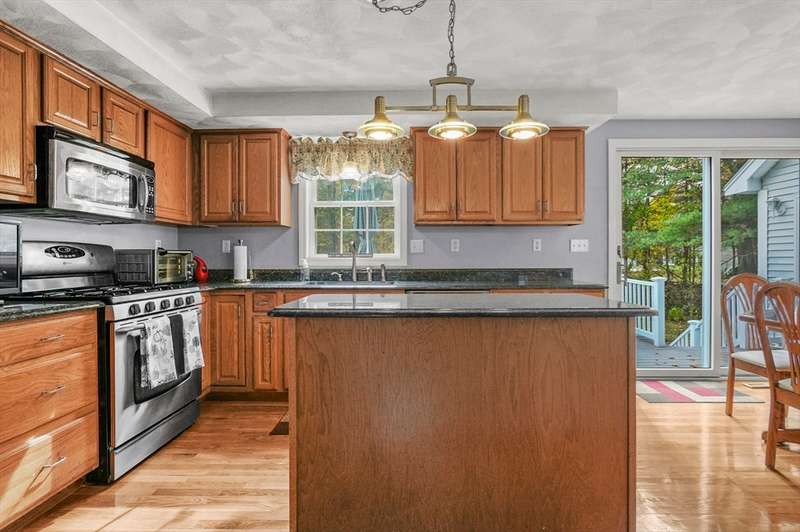 This beautiful 3/4 bedroom, 2.5-bath Colonial is waiting for YOU! Upon entering you're greeted with gleaming hardwood floors that create a warm & inviting atmosphere. The spacious kitchen features upgraded granite countertops, SS appliances, & a casual dining area w/sliders to deck. French doors from the formal dinrm open to a sun-drenched great room w/soaring vaulted ceilings, a cozy gas fireplace, surround sound speakers, pool table & direct access to the multi-level deck and huge backyard—ideal for entertaining. The 1st floor also includes a bright office or den, a convenient half bath w/laundry plus a 1st floor bedroom or office, your choice! Upstairs, the primary suite is a peaceful retreat w/walk-in closet & private ensuite bath. Two additional generously sized bedrooms share a full bath. Additional highlights include a walk-up 3rd floor for potential expansion, 2-car garage & a desirable location all on a tranquil dead-end street. Enjoy close proximity to local amenities & more!