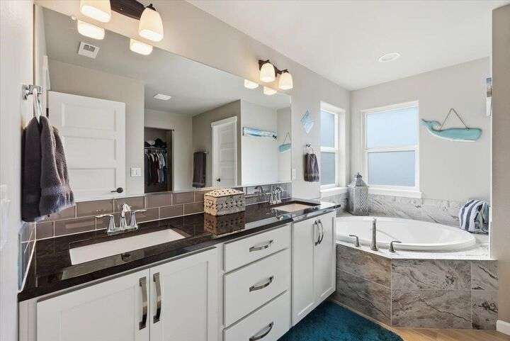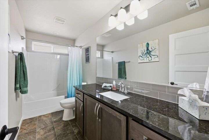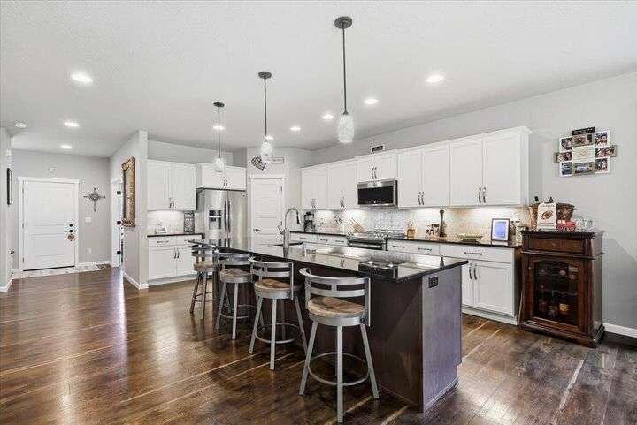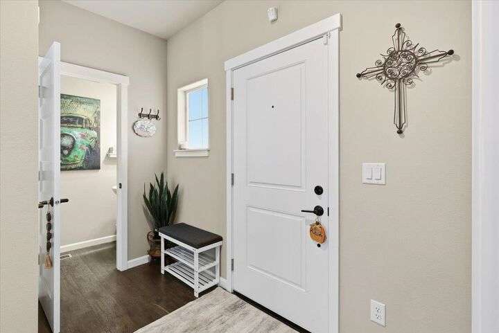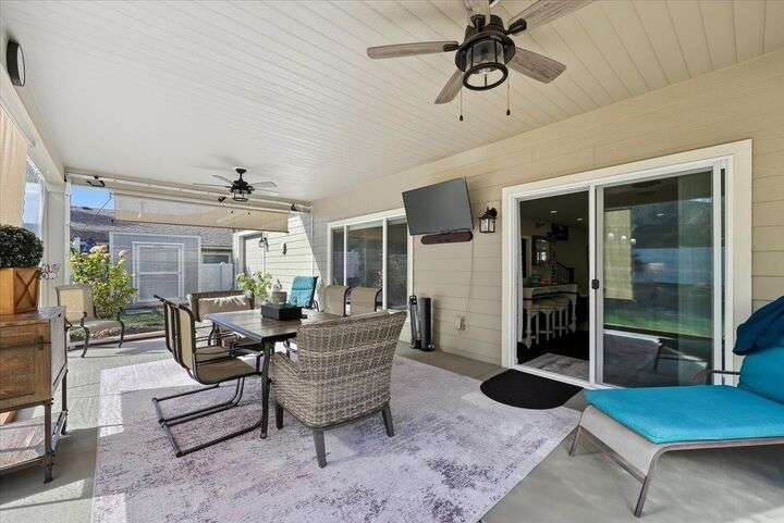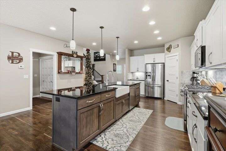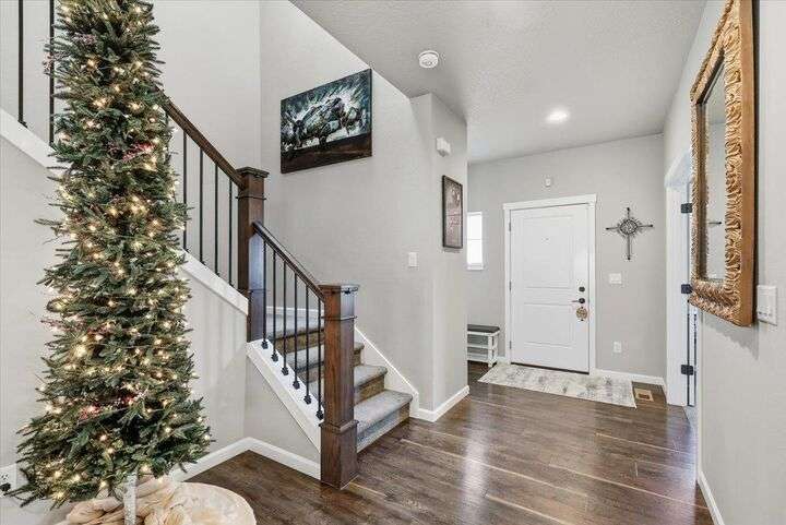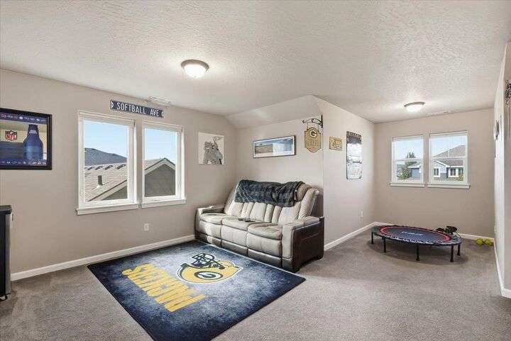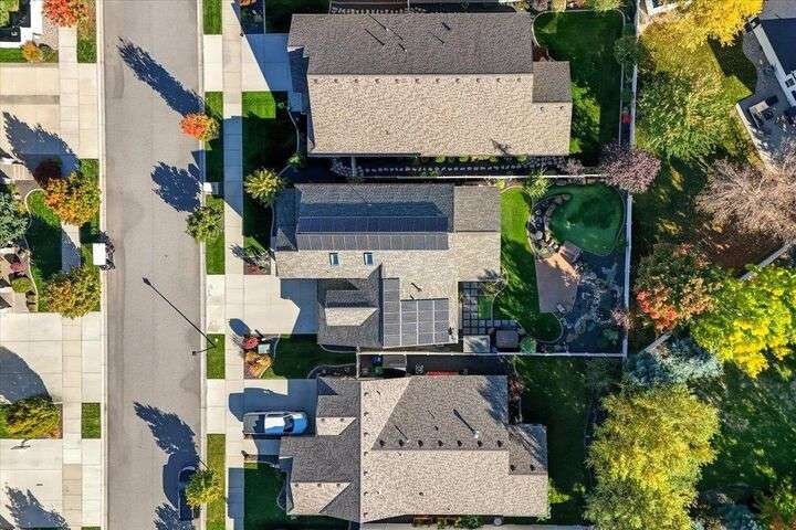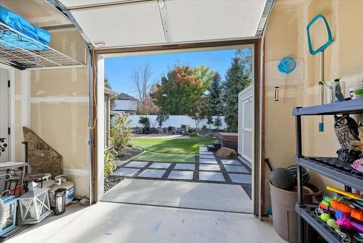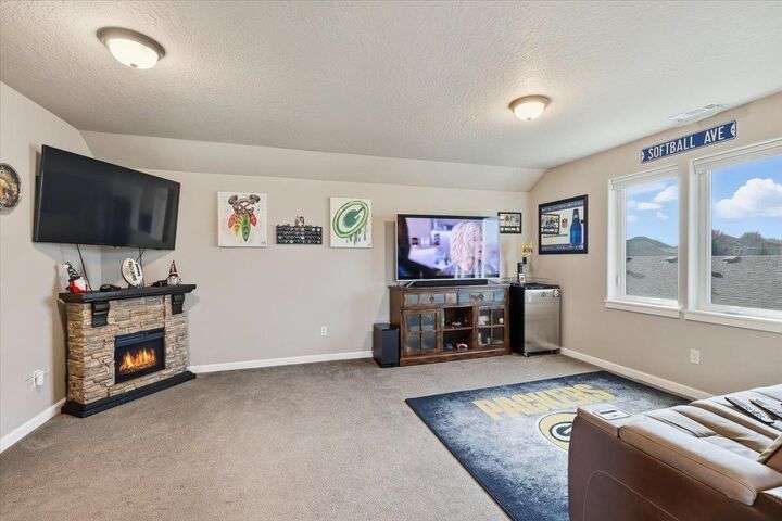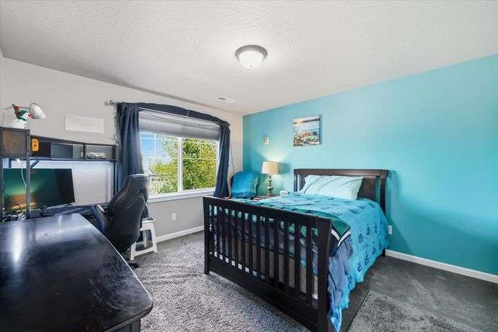 2016 Spokane Parade of Homes showpiece! The sought-after Addison by Greenstone offers 2,650 sq ft, 4 bedrooms, 3 baths, office, and an oversized 3-car tandem garage that opens through to the backyard. Designer finishes include Black Pearl granite, Huntwood cabinetry, stainless appliances, gas range, convection oven, and marble-tiled fireplace with built-ins. Light-filled stairwell with skylights, spacious primary suite with mountain views, dual vanity bath, and walk-in closet. Dual water heaters, bonus room with new Murphy bed, extra attic insulation, and whole-house water filtration. Outside enjoy a landscaped retreat with $116K in upgrades—tranquil waterfall, turf putting green with tee box, and stamped concrete patio. Covered patio enclosure with lighting, fans, and clear vinyl panels creates a year-round outdoor living space. Energy-efficient features include owned 44-panel solar array (avg. $135/mo utilities), new 2022 roof, and central A/C.