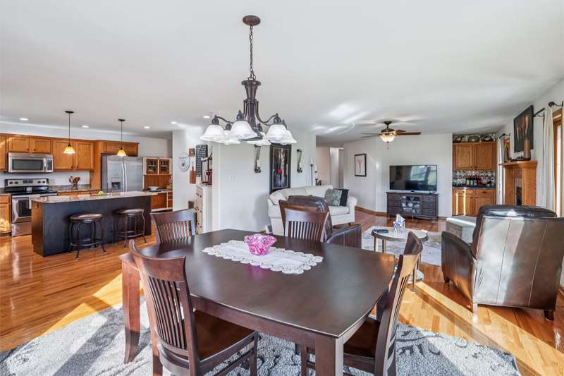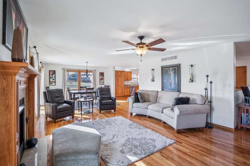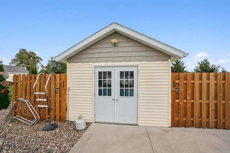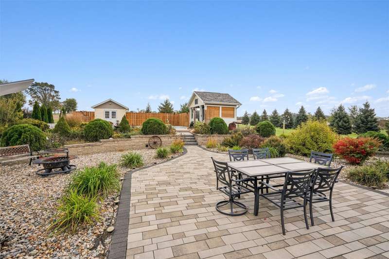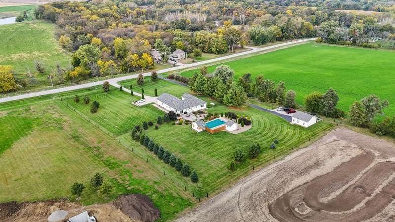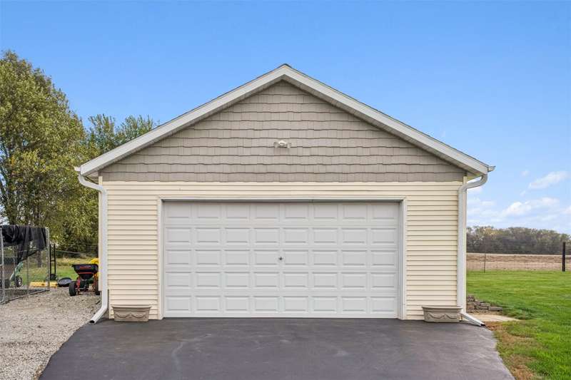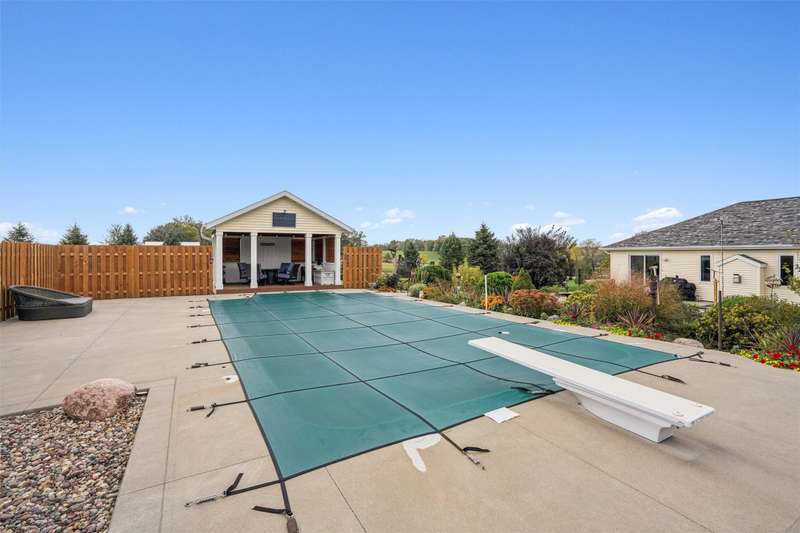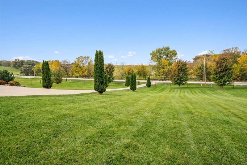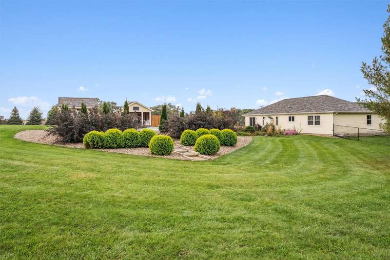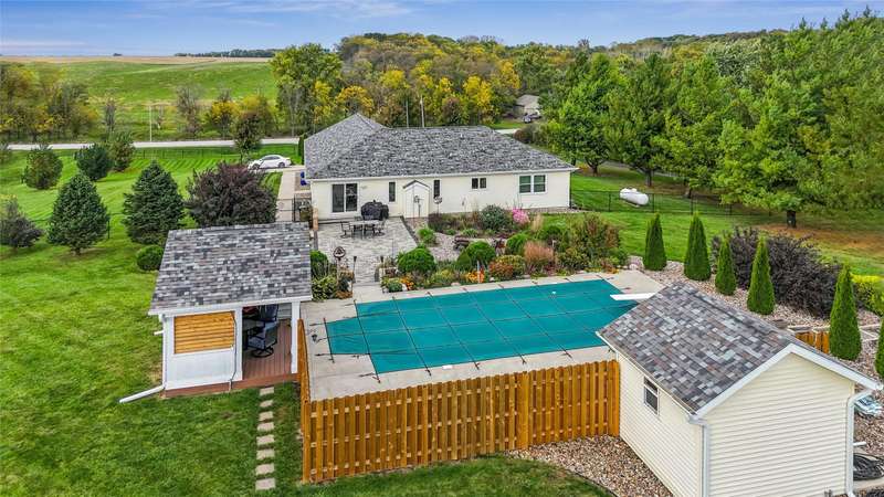 Every inch a stunning acreage, from the front gated entrance to the oasis in back with inground pool, large brick patio & gorgeous landscaping. The ranch boasts almost 3000 sq ft finished & hardwood floors run throughout the entry, hallways, living & kitchen areas. The living room has a gas fireplace, bar cabinet & flows into the dining area that walks out to the outstanding patio area. The large kitchen includes lots of cabinets & granite countertops. The primary bedroom suite has double closets, updated bath w/jetted tub, quartz counters. Two more bedrooms, a full bath & laundry complete the main level. The finished lower level has a large bar, gaming & living area great for entertaining, also a bath w/shower, LVP flooring, sliding barn door, & an extra flex room. Green board in the walls ensure a dry basement. Entertain guests at the stunning private salt water pool w/solar cover. There is electric to the pool house, equipment shed & an additional 24X24 garage/shop w/10 ft walls & heater. This is a quality-built home with outstanding amenities, 3 ft insulation in attic w/low energy bills, 50 gal HWH, newer roof/gutters. The perimeter is fully fenced & the pool has additional fencing, outstanding trees are on the entire property. The oversized 4-car tandem garage has a heater & walk thru door. On almost 3 acres off blacktop, this is a meticulously maintained property near Thomas Mitchell Park & 6 mi to the bike trail. Near #2 ranked SE Polk HS & Mitchellville Elementary.