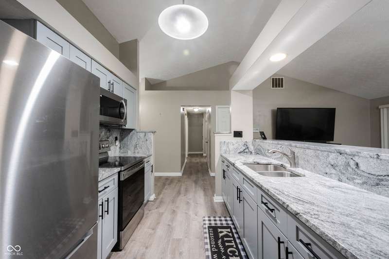 This ranch home with spectacular pond views is situated on a cul-de-sac and centrally located with easy access to 69, 465, downtown Indy, shopping, restaurants and so much more! You'll love the flowing open floorplan perfect for everyday living and entertaining! Soaring ceilings enhance the family room and dining area with two sliding glass doors to bring the outside in! Cooking meals is a breeze in this updated kitchen featuring granite countertops, breakfast bar and pantry. Easy-to-clean laminate floors grace the main living areas and primary bedroom. Relaxing primary retreat with patio doors to the backyard w/ pond views, walk-in closet & updated attached bath! Two nice size secondary bedrooms and updated secondary bathroom. Must-see huge sunroom with serene views of the pond. The perfect place to begin your day with coffee, relax with a book or enjoy evenings with family and friends!