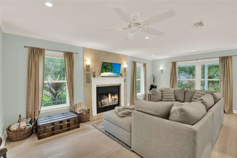 BEAUTIFULLY UPDATED BELLEAIR HOME ON A RARE, PRIVATE OVERSIZED DOUBLE LOT! Situated across from a peaceful neighborhood park, this 2,784 sq ft, 3BR / 2.5BA home combines timeless charm with thoughtful modern features, an oversized RV/boat garage and complete yard privacy behind a full perimeter wall. Spacious living areas feature hardwood floors, crown molding, and abundant natural light. The gourmet kitchen is a chef’s dream—offering a large granite island, gas cooktop with pot filler, double convection ovens, warming drawer, and pantry-style storage. A flexible MAIN-LEVEL BONUS ROOM is perfect for a home office, gym, or playroom. Upstairs, the expansive primary suite includes a WALK-IN CLOSET, built-in cabinetry, double-sink vanity, and en suite laundry. The 2nd floor also includes a 2nd bedroom with attached full bath with tub and a guest room with custom cabinetry that doubles as an office. Enjoy outdoor living in a beautifully landscaped setting with mature trees, butterfly garden, screened back porch, and stone patio—an ideal retreat for relaxing or entertaining. A rare find in Belleair, the OVERSIZED ATTACHED RV/BOAT GARAGE (40’ x 17’ with 14’ ceilings and 12’x12’ door) includes wall A/C, 300-amp service, built-in storage, and a workbench, offering unmatched versatility. ADDITIONAL HIGHLIGHTS INCLUDE HURRICANE-IMPACT WINDOWS, TWO BRAND-NEW HVAC SYSTEMS WITH TRANSFERABLE 10-YEAR WARRANTIES, REROOFED DURING MAJOR RENOVATION, SOLAR ATTIC FANS, GENERATOR HOOK-UP, AND A SECURITY SYSTEM. NO FLOOD INSURANCE REQUIRED and no pool to maintain. Just minutes from Belleair Country Club, beaches, shopping, and dining. This move-in-ready home delivers space, privacy, and exceptional value in one of Belleair’s most desirable areas!