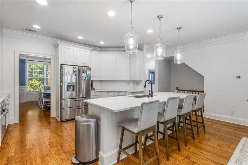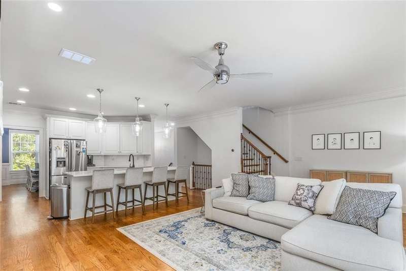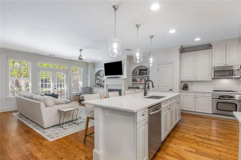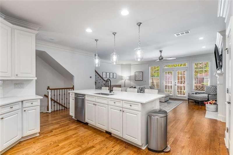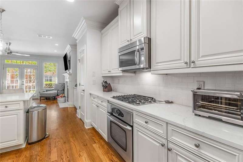 If you've been looking for an updated townhome in one of Brookhaven's best locations, your search ends here! Welcome home to 1524 Donaldson Park Drive, a beautifully reimagined home in a 24-unit community just steps from everything Brookhaven has to offer. This home features 3 bedrooms, 2 full and 2 half baths, and a spacious open floor plan. Welcoming hardwoods invite you in and flow throughout the main level, which features a large separate dining room, powder room, and large and airy main living space. The living room boasts a gas fireplace with stunning designer tile surround, built-in bookshelves, and access to the cozy back deck. The remodeled kitchen features a large island with room for seating, quartz countertops, white cabinets, and a suite of stainless steel appliances. Upstairs you'll find an oversized primary suite with walk-in closet and en suite bathroom with separate tub and shower and double vanities, plus two additional guest bedrooms and a second full bath. The fully finished terrace level features a large den with wood-look tile floor, an additional half bath, and access to the two car garage. Just steps from Blackburn Park and it's 50 acres of trails, sports fields, tennis courts, and playground, plus walking distance to restaurants and retail!