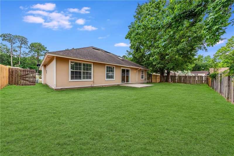 4 bedroom split floor plan corner lot! Other features include: foyer entry, vaulted ceilings, skylights in the living room and master bathroom, allowing natural light to enhance the living spaces. A dining area, breakfast nook, and a convenient pass-through from the kitchen to the living room make everyday living and entertaining seamless. The spacious primary bedroom serves as a true retreat, and has a newly renovated tiled shower, separate soaking tub, double vanity, walk-in closet, and its own skylight for added brightness. New carpeting has been installed in the master bedroom and one guest room, while the remaining areas feature wood laminate flooring. The front guest bedroom is highlighted by a tall ceiling, adding to the homes charm. Additional features include a two-car garage and a location on a cul-de-sac street, offering both convenience and privacy. While move-in ready, theres ample opportunity for buyers to customize and add personal touches to make this home truly their own. Kings Bay Naval Submarine Base: Approximately 2.2 miles; Jacksonville, Florida: Located about 35 miles south. Camden County School District. Sugarmill Plantation Amenities: Olympic-sized swimming pool, tennis courts, playground, soccer field, and picnic area, sidewalks through tree-lined streets. Easy to show!