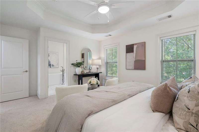 Introducing the best kept secret in Alpharetta! Luxurious townhome in Enclave at Milton Park - tucked away on a tranquil, tree-lined street with walking access to the Greenway and minutes to Avalon, Downtown Alpharetta, GA 400, and all that Awesome Alpharetta has to offer! Stroll just outside your front door to the quaint Tuscany Cafe and several other wonderful restaurants and shops. We believe you will find this renovated townhome is the best value in the area for the lifestyle it provides. Lovingly maintained and beautiful renovations including kitchen and primary bath. Freshly painted throughout. New carpet. Highly sought after floor plan with two separate iiving areas including fireside family room that opens to the covered balcony and a separate living room that can also serve as a home office or media room. Wet bar perfect for entertaining. Upstairs you'll find a spacious primary suite and stunning renovated primary bath. Two additional bedrooms and full bath as well as the laundry room complete the upper level. On the lower level is the one car garage with lots of extra storage space. Additional driveway parking. Enjoy low maintenance living and a lifestyle like none other. Don't miss out...this is a gem!