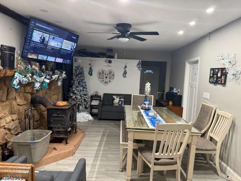 Great layout ranch style single family home with woodburning stove in living room, large kitchen, and 2 bedrooms. Laundry room with additional storage.