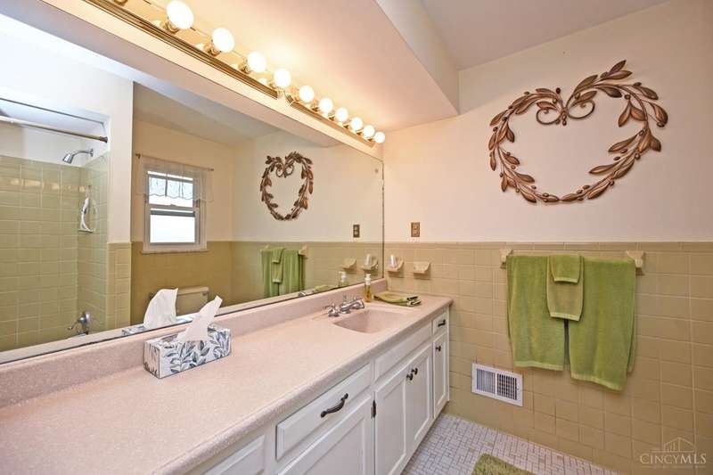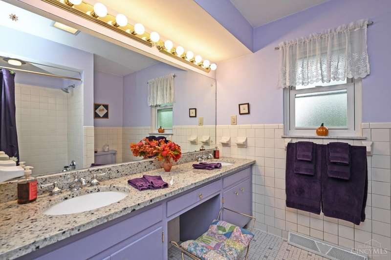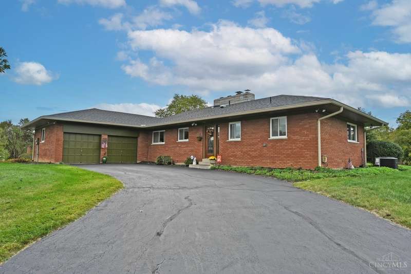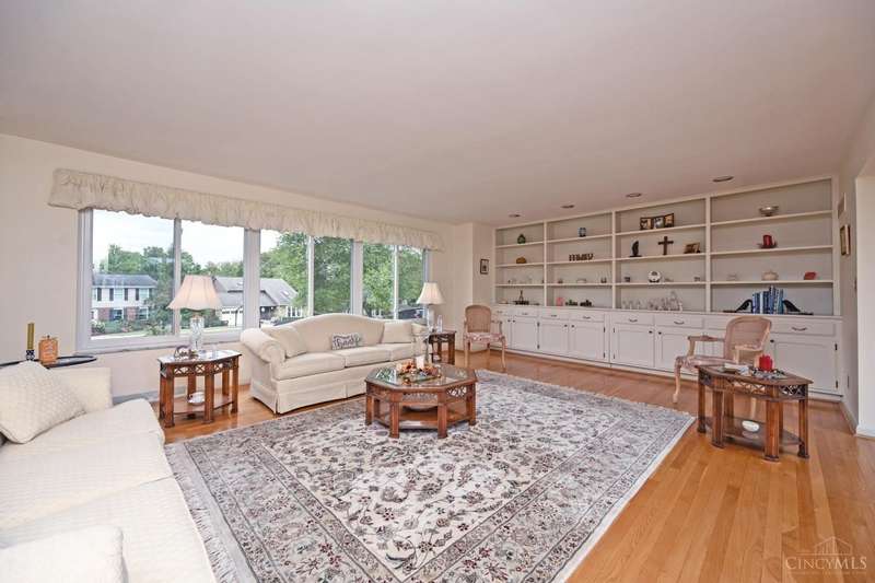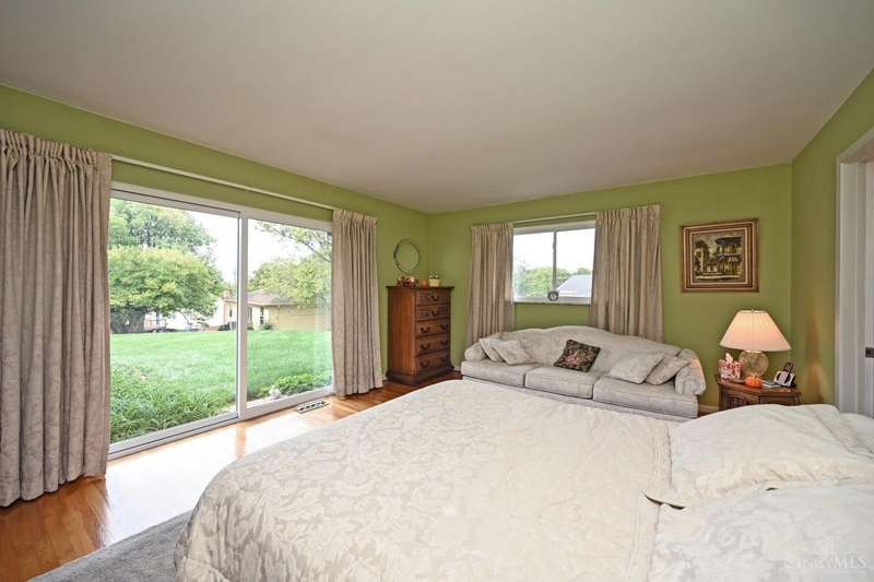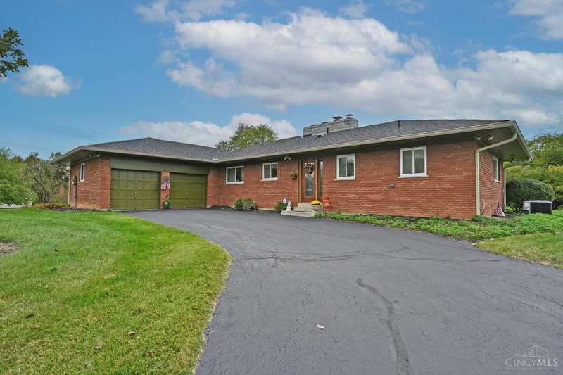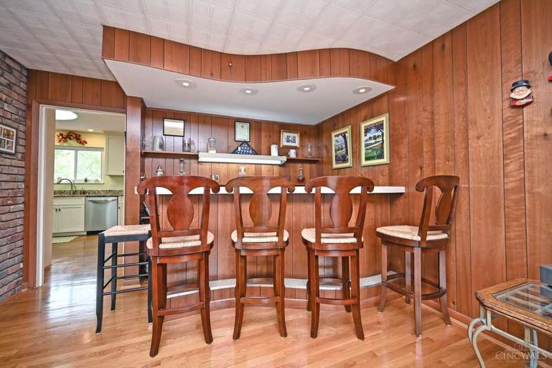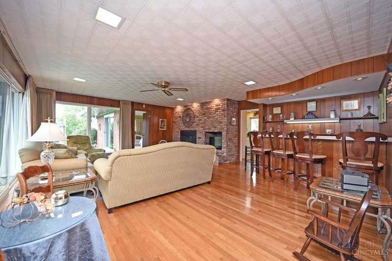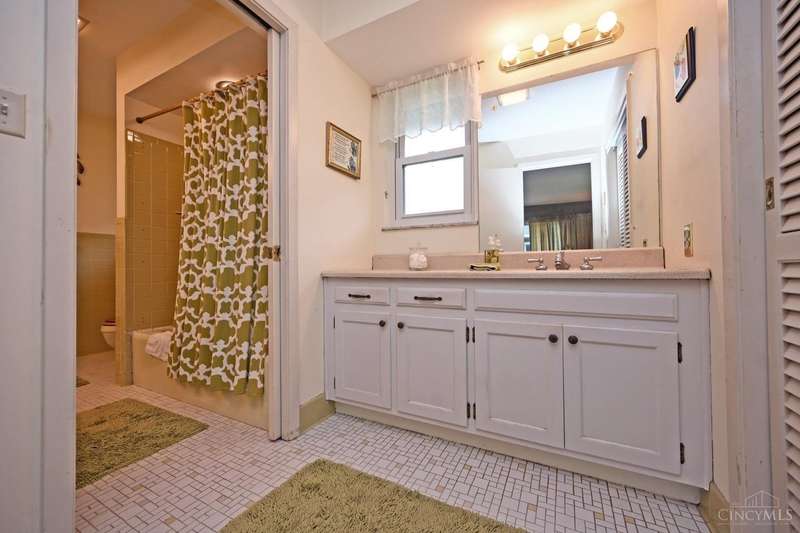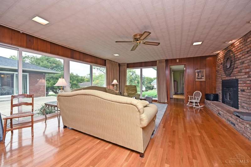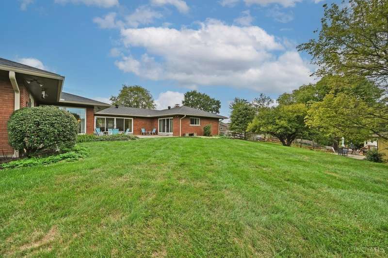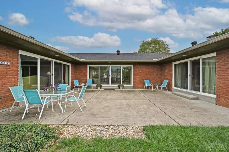 Pride of ownership shows in this meticulously maintained mid-century ranch in Anderson Township you just have to see in person! Light, bright, airy and spacious, the unique floor plan creates a super cool courtyard that is accessible with walkouts on 3 sides. True all one floor living with additional finished spaces in the lower level that includes a flex room giving you tons of options. Besides the primary bedroom with it's own en suite, there is an additional roomy bedroom with it's own full en suite bathroom as well. Slate entry, warm wood floors throughout, a wall of built ins, amazing windows and the stunning beautiful wood panel wall are just some of the vintage details you'll love. Cinch Home Warranty included. Truly a must see!
