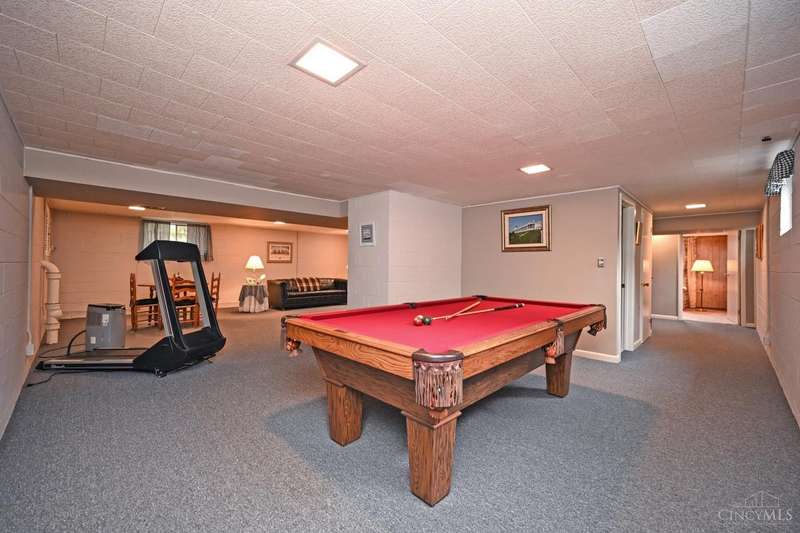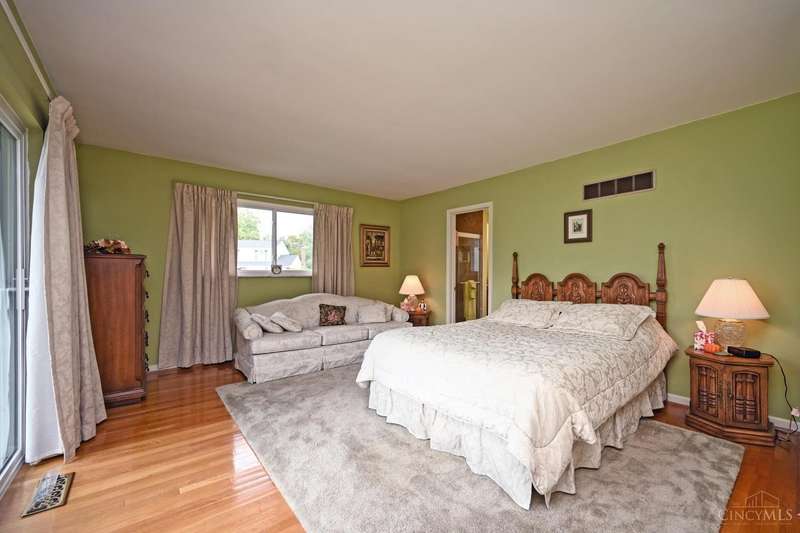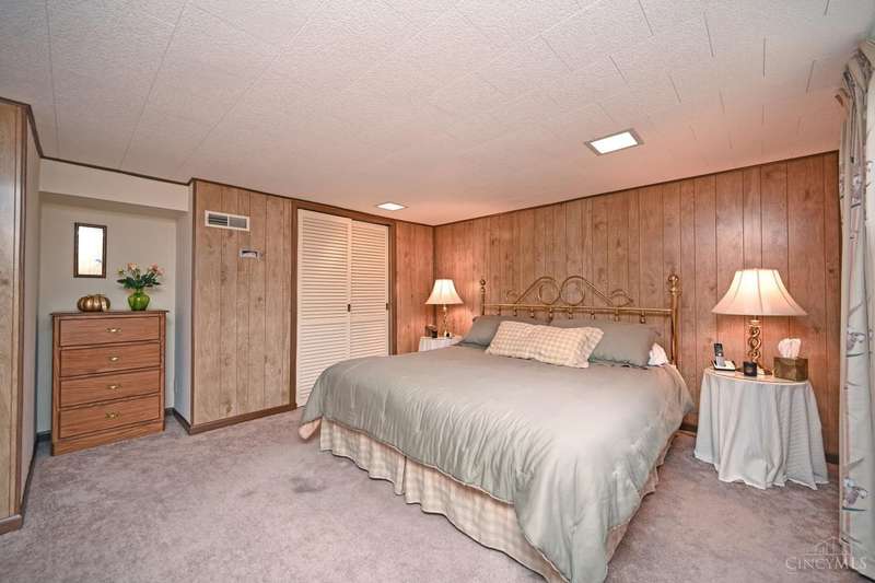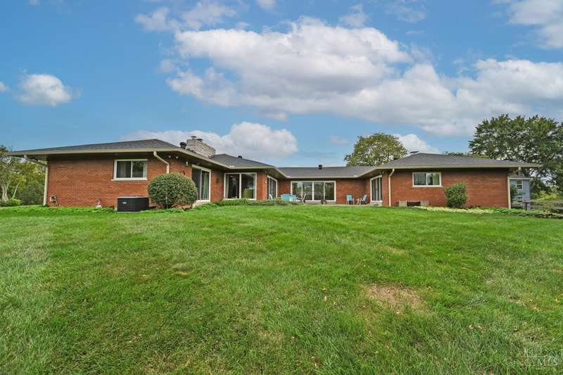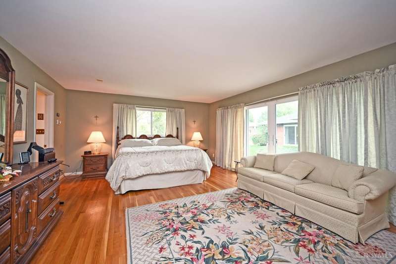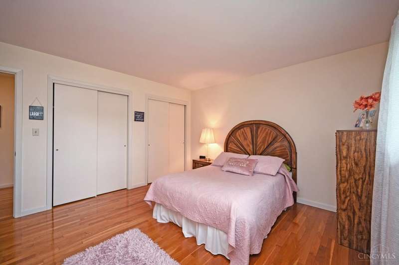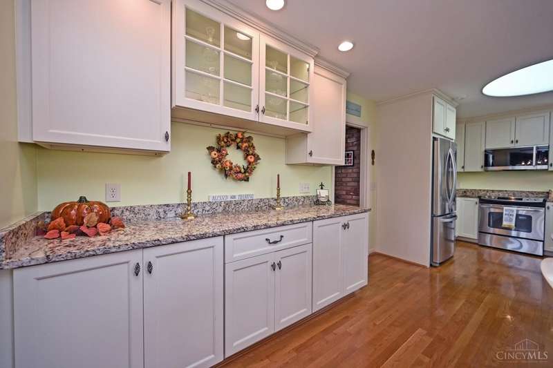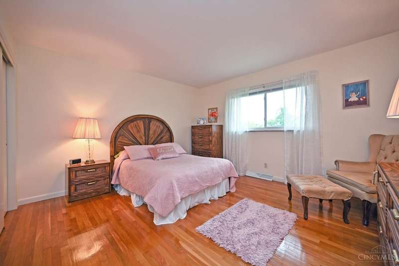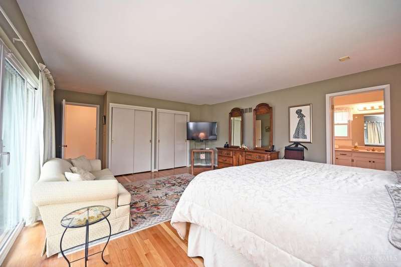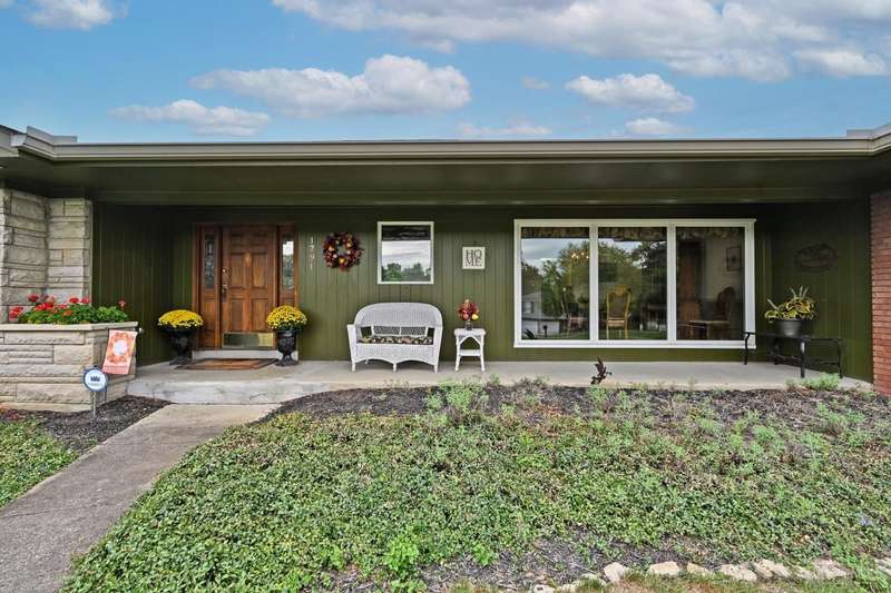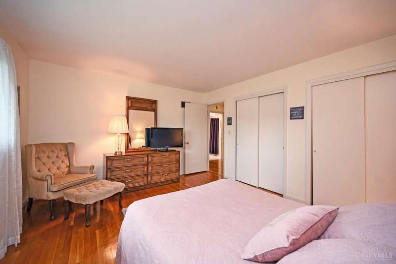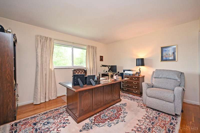 Pride of ownership shows in this meticulously maintained mid-century ranch in Anderson Township you just have to see in person! Light, bright, airy and spacious, the unique floor plan creates a super cool courtyard that is accessible with walkouts on 3 sides. True all one floor living with additional finished spaces in the lower level that includes a flex room giving you tons of options. Besides the primary bedroom with it's own en suite, there is an additional roomy bedroom with it's own full en suite bathroom as well. Slate entry, warm wood floors throughout, a wall of built ins, amazing windows and the stunning beautiful wood panel wall are just some of the vintage details you'll love. Cinch Home Warranty included. Truly a must see!