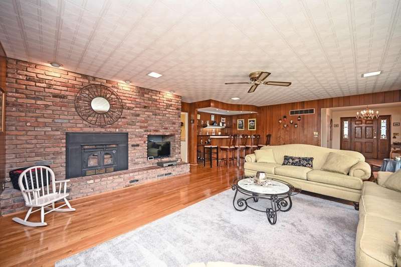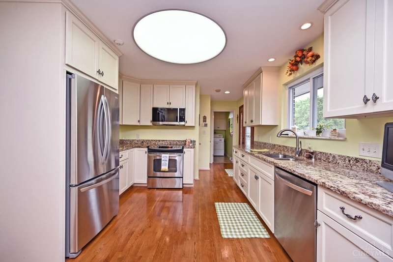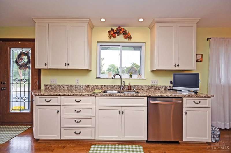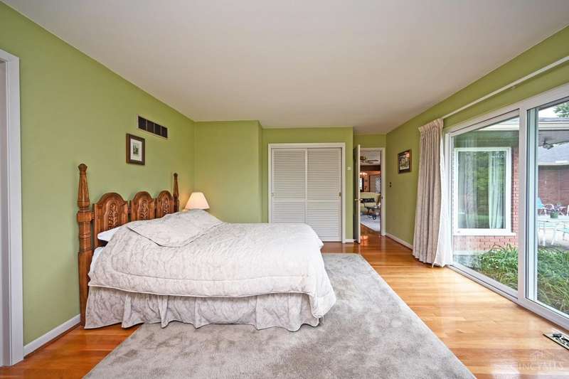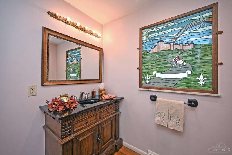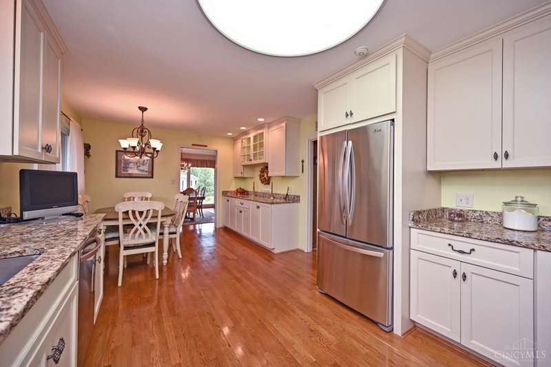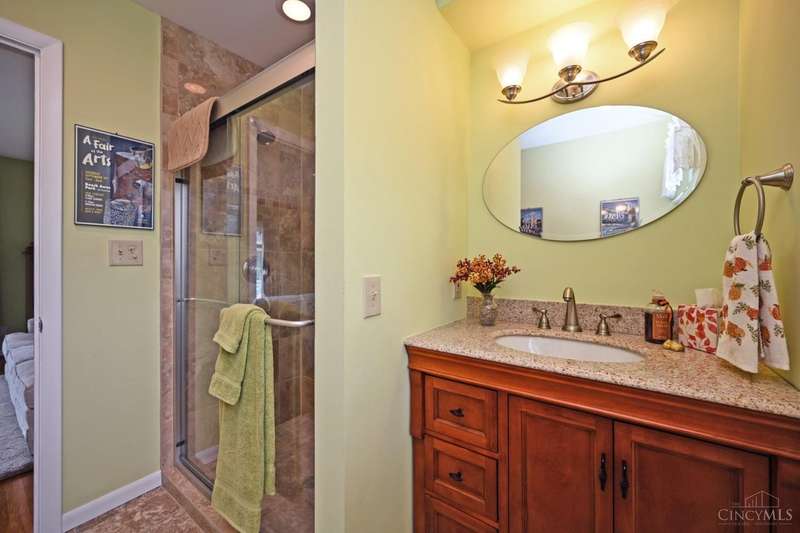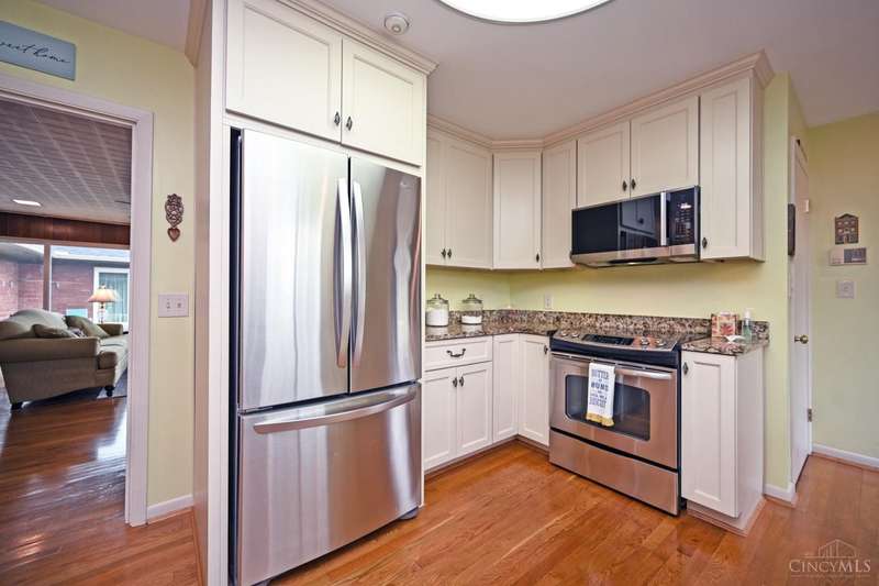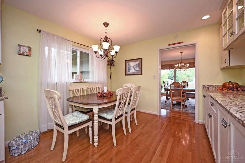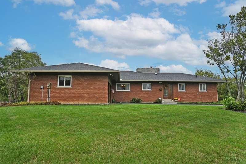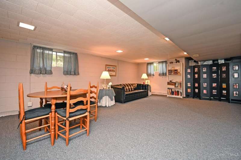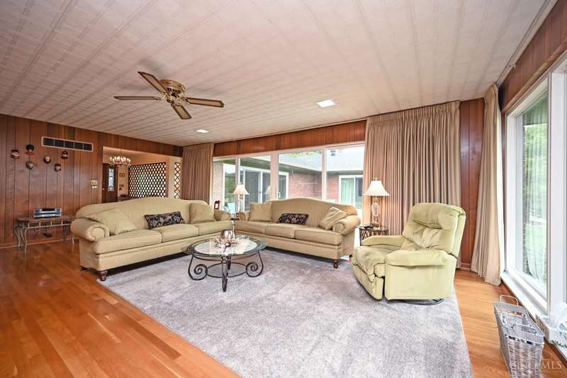 Pride of ownership shows in this meticulously maintained mid-century ranch in Anderson Township you just have to see in person! Light, bright, airy and spacious, the unique floor plan creates a super cool courtyard that is accessible with walkouts on 3 sides. True all one floor living with additional finished spaces in the lower level that includes a flex room giving you tons of options. Besides the primary bedroom with it's own en suite, there is an additional roomy bedroom with it's own full en suite bathroom as well. Slate entry, warm wood floors throughout, a wall of built ins, amazing windows and the stunning beautiful wood panel wall are just some of the vintage details you'll love. Cinch Home Warranty included. Truly a must see!
