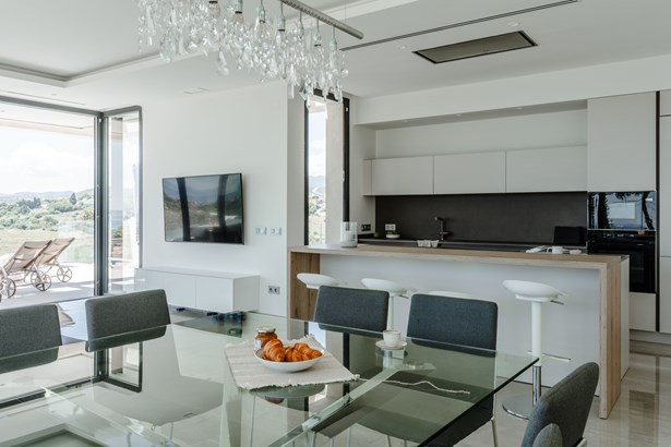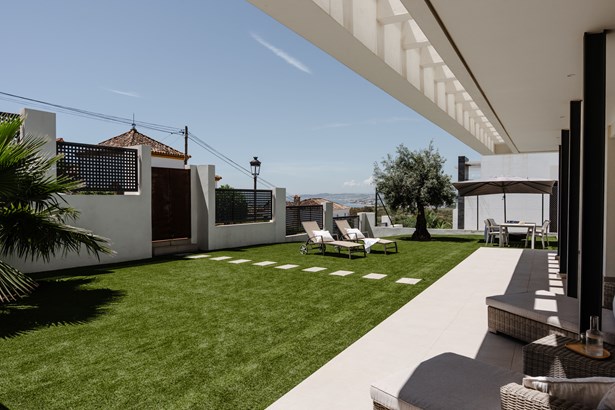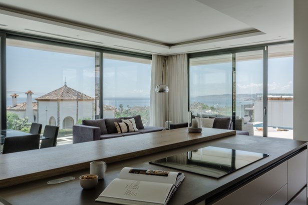 We present you to our new exclusive listing: a modern luxury villa located in the privilged area of Seghers in Estepona. This stunning property, built with top-quality materials, is the ideal retreat for those seeking a sophisticated coastal lifestyle.Enjoy panoramic views of the Mediterranean Sea, the African coastline, and Gibraltar from every corner of this spectacular villa. With five bedrooms and four full bathrooms, plus a guest toilet, the home offers generous and elegant living space. Two of the bedrooms are en-suite and include private dressing rooms, creating an oasis of comfort and privacy. All rooms open onto the terrace, filling the interiors with natural light and offering breathtaking views of the garden, sea, and mountains. The bedrooms are equipped with electric blinds and bathrooms with underfloor heating.The villa is distributed over two floors plus a solarium, connected in a functional and harmonious layout. It can be accessed from both the ground and first floo