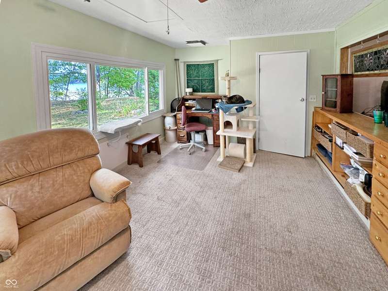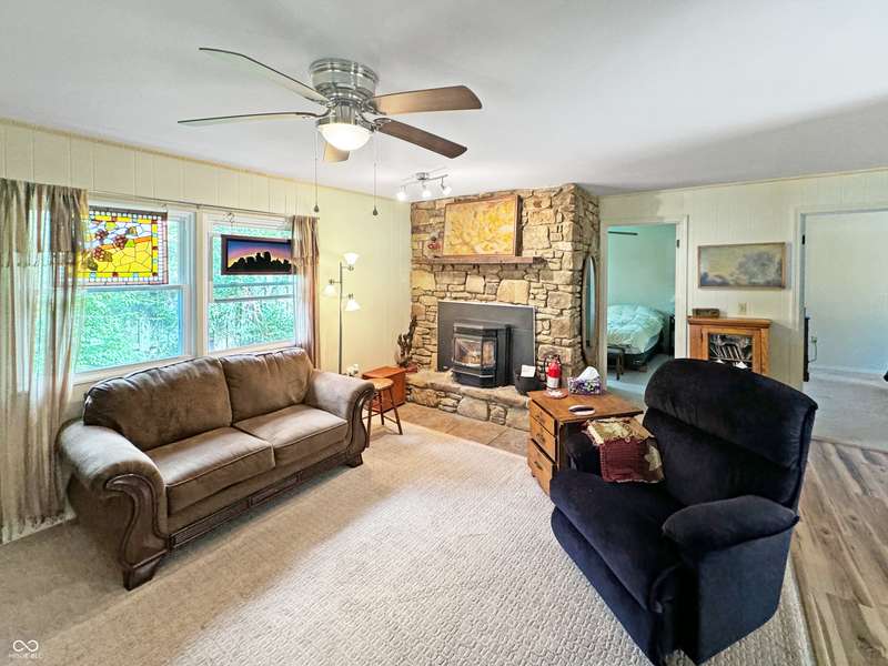 Writer's Studio...This is the perfect spot for a writer or an artist. There is a massive living/dining area with an adjacent sunroom for bookcases, easels, or even a grand piano. Either bedroom is large enough for a king size bed or a guest room in the other. You'll love the pellet stove tucked away in the stacked stone fireplace, the delightful dining patio, and colorful garden. The two car oversize garage can be converted into a separate studio or a workshop if needed. This home is truly tonic for the creative mind.