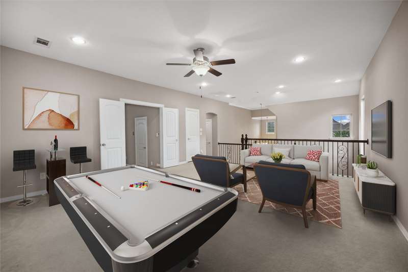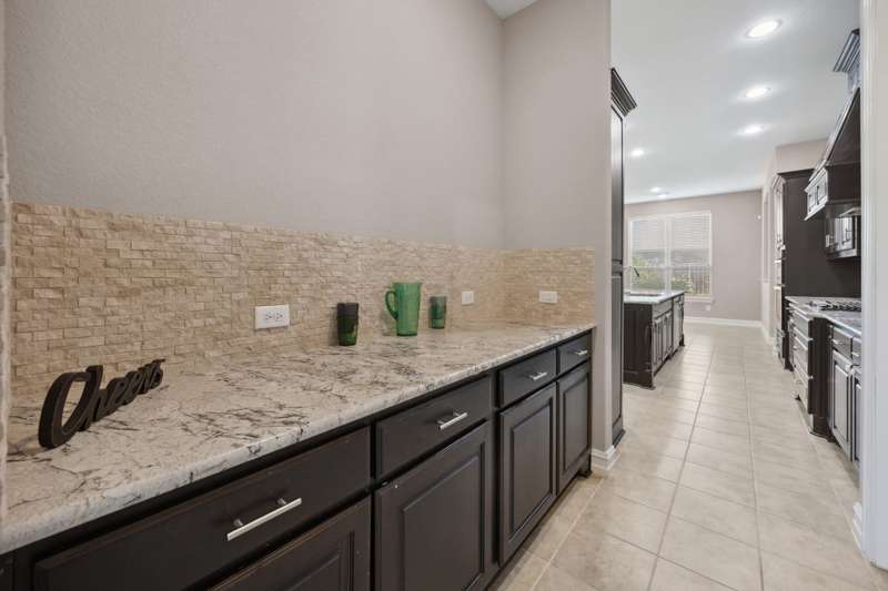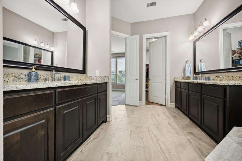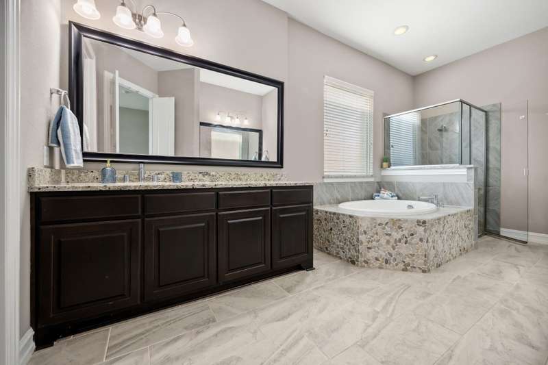 Prepare to be impressed from the moment you arrive. This stunning North Facing home boasts amazing curb appeal, showcasing an upgraded elevation with a blend of brick, stone, metal awning, and charming cedar accents. With nearly 4,000 square feet of thoughtfully designed living space, this home offers 5 spacious bedrooms, 4 full bathrooms, and an array of functional spaces including a formal dining room, pocket office, game room, and media roomideal for todays modern lifestyle. Primary suite and secondary bedroom with full bath conveniently located on the main levelperfect for multigenerational living or guests. The Chefs kitchen features granite countertops, stainless steel appliances, ample cabinetry, and a large island thats perfect for both everyday use and entertaining. The Family room offers a cozy gas fireplace, floating shelves, and large windows with views of the backyard, creating a warm and inviting atmosphere. Featuring an Open-concept layout that seamlessly connects the kitchen, breakfast nook, and family room, ideal for family gatherings and entertaining. Enjoy your own private sanctuary with a spa-inspired ensuite that includes a soaking tub, separate walk-in shower, Dual granite vanities with undermount sinks, and an Oversized walk-in closet. Other features include a 3-car tandem garage, a large utility room with sink, extra fridge space, and a built-in mud bench. Nestled in the highly sought-after Miramonte community, residents enjoy access to a resort-style pool, parks, sports fields, fishing ponds, and scenic walking & biking trails. The neighborhood feeds into exceptional Prosper schools and is just a quick stroll to the elementary school, junior high, and Rock Hill High School. The home is in a fabulous location just minutes from premier destinations like The Star, PGA Headquarters, and Universal Studios. Served by exceptional Prosper ISD schools, this home delivers the perfect blend of luxury, functionality, and an unbeatable location.