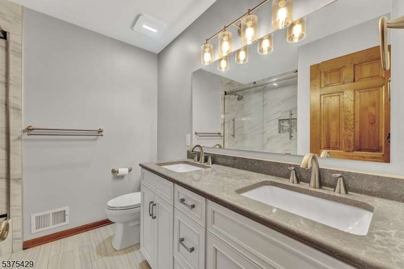This custom colonial in Hoagland Farms West development offers many amenities. This home includes 3 finished areas, 5 bedrooms, and 3.1 bathrooms. The stunning home offers hardwood floors on two levels, 6 panel solid wood doors throughout, moldings in Living Room, Dining room with chandelier, French door, and bay window. The kitchen includes a gorgeous custom cabinetry, granite countertops, decorative backsplash, breakfast bar, desk area, gourmet stainless steel appliances, exhaust venting system, double pantry doors and an immense sun drenched breakfast room with bay window. The family room offers a brick wood burning fireplace w/wood mantel and triple French door which leads to a covered porch (19 x 14), stone paver patio (28 x 12) and fire pit. All bathrooms on two levels have been completing renovated with tubs, shower stalls, shower enclosures, tile, and granite countertops. The finished basement is over 1000 sq. ft. which includes a leisure room, bedroom, kitchen without a stove, and a full bath. The exterior of the home is vinyl siding, newer roof, front porch w/cement flooring, metal fencing and storage shed. The AC was replaced in 2013, furnace 2022, and hot water heater in 2018.