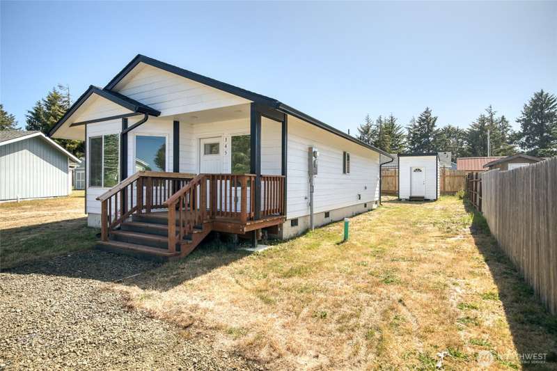 LIKE NEW 2023 HOME!! This 2 bed, 1 full bath 834sqft home is gently used and ready for someone to make it their own! Located near Ocean Shores Elementary, and with 1.5 miles of the nearest beach approach, Ocean Shores Golf Course, and 1 mile from the Weatherwax nature trail. This adorable home would make a great getaway sanctuary or a cozy full time living home. Kitchen has well thought out layout to maximize usage and flow, with beautiful butcher block counters and dining bar. Plentiful windows provides natural light to flow into the living space. Large yard with shed, small patio, and fire pit gives you the opportunity to create your dream garden or ideal outdoor living space. With all appliances included this is a move in ready home!