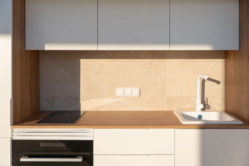 The flats themselves feature contemporary design and functionality. Depending on the model, they offer two or three double bedrooms with fitted wardrobes, providing ample storage space. The bathroom includes a walk-in shower, ensuring convenience and modern aesthetics. The open-plan kitchen and dining area are equipped, allowing residents to prepare meals and dine comfortably. The spacious living area is filled with natural light, thanks to large French-style windows that create a bright and airy atmosphere. The master bedroom also includes an en-suite bathroom with a walk-in shower, adding an extra level of comfort and privacy.