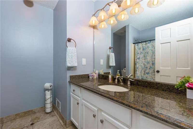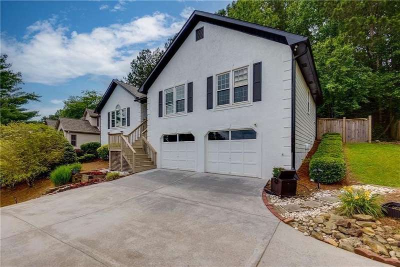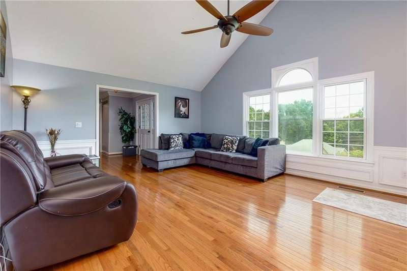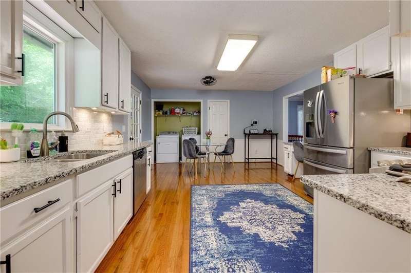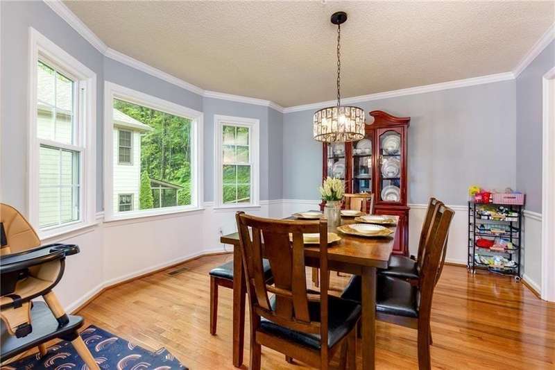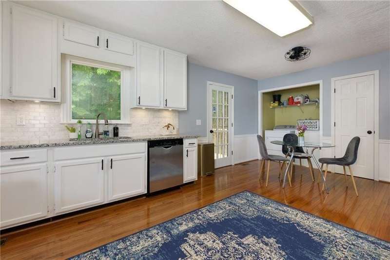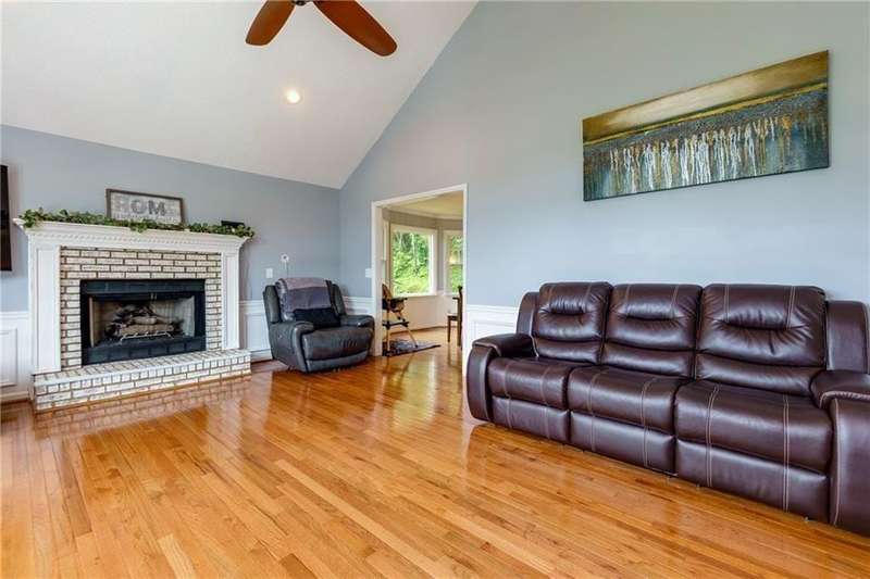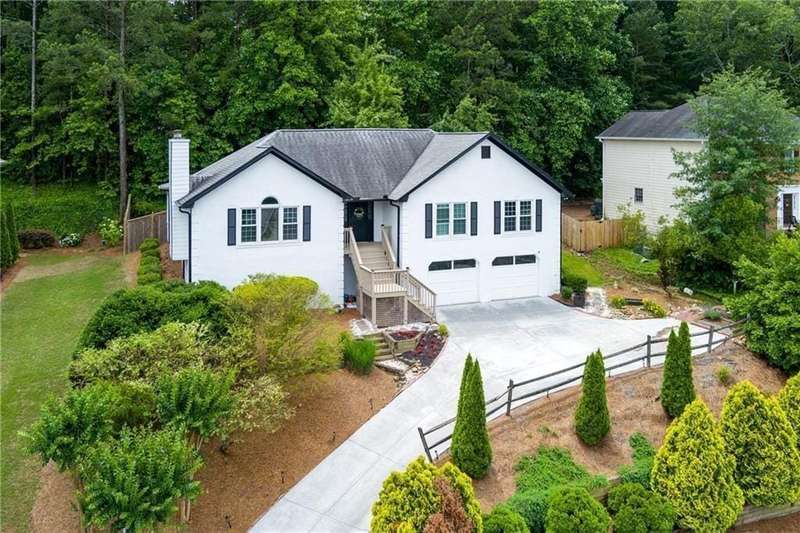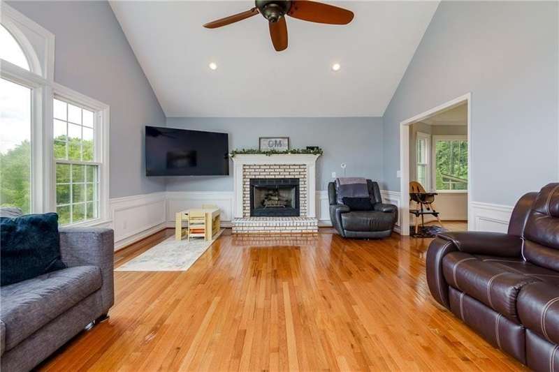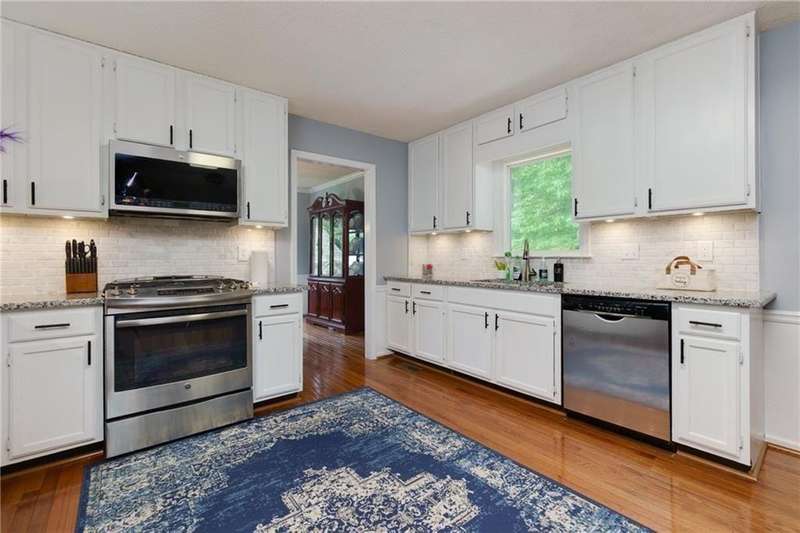 LOCATION LOCATION LOCATION!!!Beautiful home in Woodstock close to 575 in Downtown Woodstock. Enjoy one level living with finished basement and drive under garage. Main level has newer hardwood floors, open family room with vaulted ceiling, beautiful brick fireplace with lots of windows bringing in all the natural light. Large formal dining room with new chandelier and bayed window. Updated kitchen with granite countertops and sub tile, backsplash and professional, stainless-steel appliances, with breakfast nook, and laundry closet. Primary suite with tray ceiling and large bathroom with double vanities and garden tub and walk in shower, walk in closet Two additional spacious bedrooms and bath. Large, finished basement with work out room and office. Perfect for a man cave or game room/media room. Lots of fabulous upgrades including: Completely redone electrical system up to code (replaced all electric receptacles to be GFCI, new LED ceiling light in basement), New whirlpool French door fridge (1 yr old), Floor ducts professionally cleaned in entire home, New HVAC (~6 months old). Central heat/AC includes basement, New fan and light in kitchen, Kitchen renovated ~ 3 years ago, Hardwood floors ~3 years old, Granite countertops in kitchen and bathrooms, newer paint, Two pear trees in backyard, Deck with porch swing, Beautiful views from living room, 2 miles from interstate 575, 4 miles from downtown Woodstock. Beautiful back deck overlooking private backyard. Don't miss this great opportunity to live in Woodstock and have community amenities (pool, tennis and playground)! Great home and great price!!