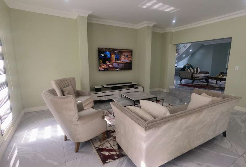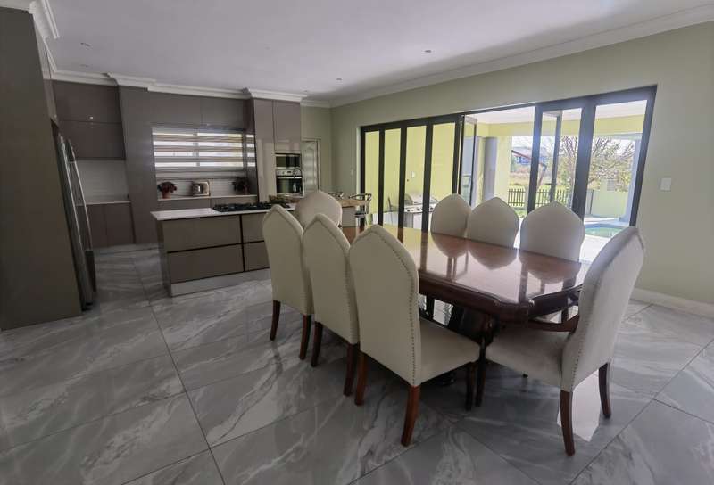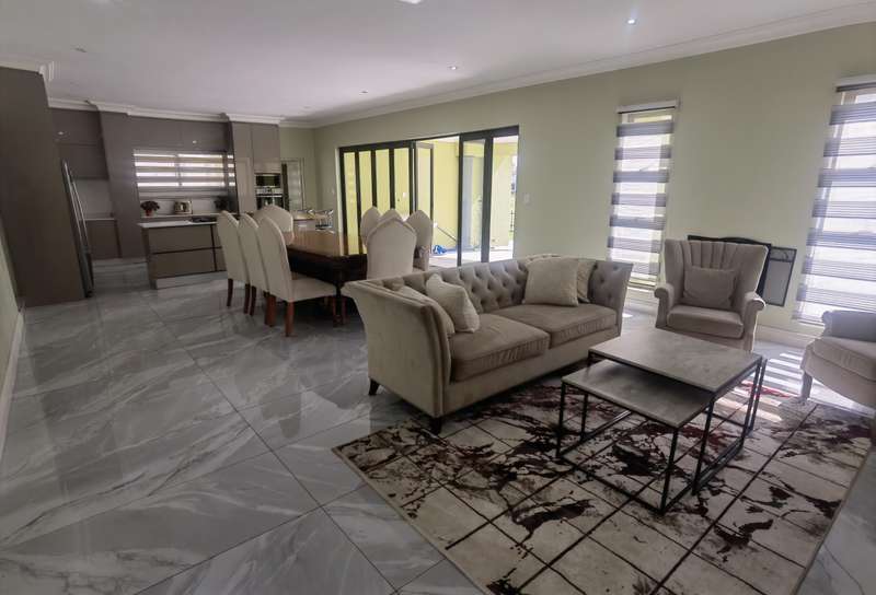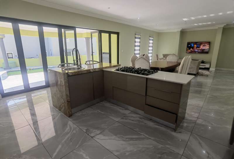 Open to Offers Experience country estate living at its finest at Blue Valley Golf Estate. The estate also has tennis courts, squash courts, soccer fields, cricket pitches, and basketball courts in addition to the 18-hole golf course designed by Gary Player. Parks on the estate are ideal for family walks, runs, and golf course viewing. At Taste Restaurant, you can enjoy amazing food. A beauty spa and conference center are also available. Free shuttle service is provided to and from the gate. There is nothing more important than the memories we make with our family. With his luxury home that was built with love and care, you can start your own family journey. You'll be greeted by a double volume entrance hall that leads to the living spaces and openness you desire. Dinner/kitchen and lounge areas open up to the entertainment area, which includes a pool, covered braai, and spacious garden for family gatherings. The kitchen features high gloss, handle-free cabinetry and built-in appliances. The subway tile splash back is refreshing and complements the kitchen, while a separate scullery adjacent to the kitchen allows for maximum flexibility of design and provides a washer and dishwasher. Except for one room with a small wardrobe, all bedrooms have en-suite bathrooms. The main bedroom has an en-suite bathroom and two walk-in closets with a balcony view. There is one bedroom downstairs, and the remaining bedrooms are upstairs. This beautiful home comes with a staff quarter, PJ LOUNGE, gas stove, air conditioners, inverter, four garages with a lot of parking, blinds, and more. Easy access to Samarand Rd which joins the N1 highway, close to Blue valley mall, fuel stations, Jacaranda college & Pre-primary, Coccolino's early childhood center, Uitsig high school, Medi clinic, International Airport, and many more. For a chance to view this property, contact me today.....