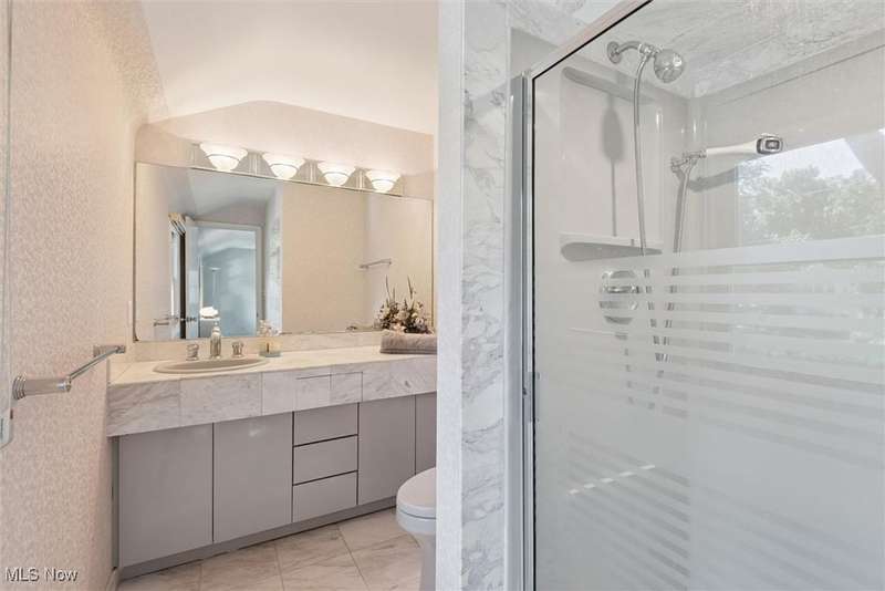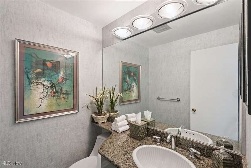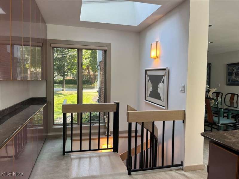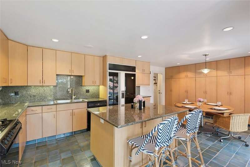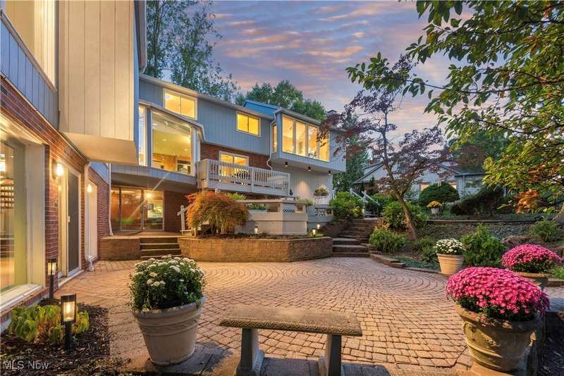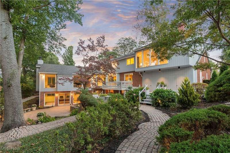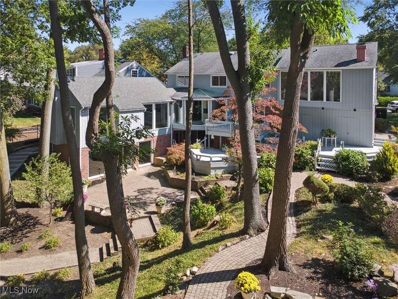 Experience a once-in-a-lifetime opportunity to own this remarkable 4,800 sq. ft. estate perfectly positioned on one of the most coveted streets in Rocky River. Nestled amidst mature trees and a beautifully landscaped property that gently slopes toward the scenic Rocky River, this 5 bedroom, 5 bath residence blends timeless sophistication with modern comfort, creating an unmatched living experience. From the moment you step through the front door illuminated by elegant skylights, you are greeted by light-filled spaces and refined architectural details. The expansive formal living room flows seamlessly into a bright and airy dining room, setting the stage for elegant dinner parties and gatherings. A bar with a spiral staircase to the lower level is illuminated with skylights and leads to 400+ft great room w/three walls of windows framing spectacular natural views, along with a striking gas fireplace?a perfect backdrop for both intimate evenings and large-scale entertaining. An open glass breezeway leads to the chef's kitchen designed for culinary excellence, featuring granite countertops, a breakfast bar, a sub zero refrigerator, custom cabinetry + storage equivalent to multiple pantries. From here, step outside onto a deck overlooking lush grounds that provide a perfect blend of privacy, beauty, and tranquility. Upstairs, discover 2 master suites, each designed as a private retreat. The primary master suite, part of a thoughtful addition, showcases a floor-to-ceiling granite gas fireplace + sweeping views of the backyard. With 3 additional bedrooms + 3 full baths on this level, there's space for family and guests to unwind in comfort. The walk-out lower level offers a wealth of possibilities. Be inspired by a spacious home office, enjoy movie nights or game days in the 400sf rec. room w/fireplace, or gather in the second 400sf great room, complete with dual sliding glass doors that open to multiple patios and serene pathways throughout the property.