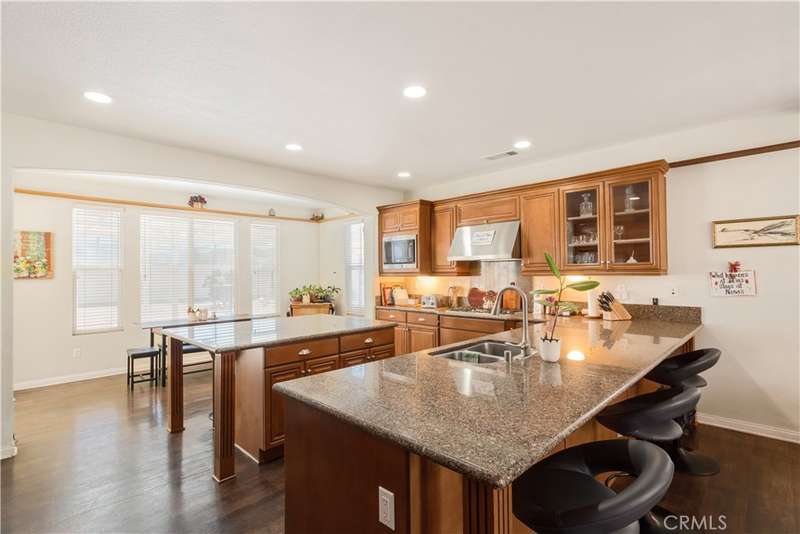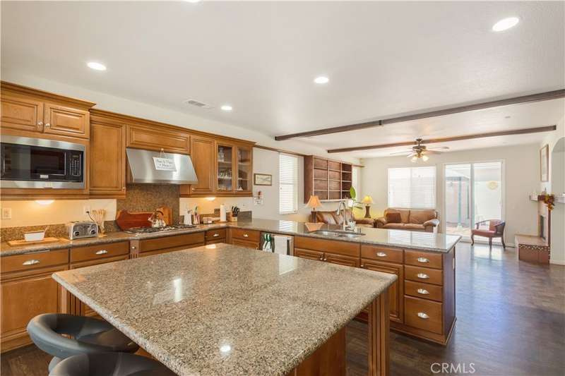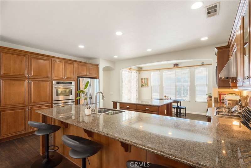 Across the courtyard, the main residence welcomes you with warmth and functionality. Inside, you'll find 3 bedrooms and 2.5 bathrooms, along with a spacious family room centered around a cozy fireplace--perfect for relaxed evenings or social gatherings. The heart of the home is a chef's kitchen, showcasing double center islands, a breakfast bar, stainless steel gas cooktop, dual ovens, an abundance of cabinetry, and a sunny breakfast nook.