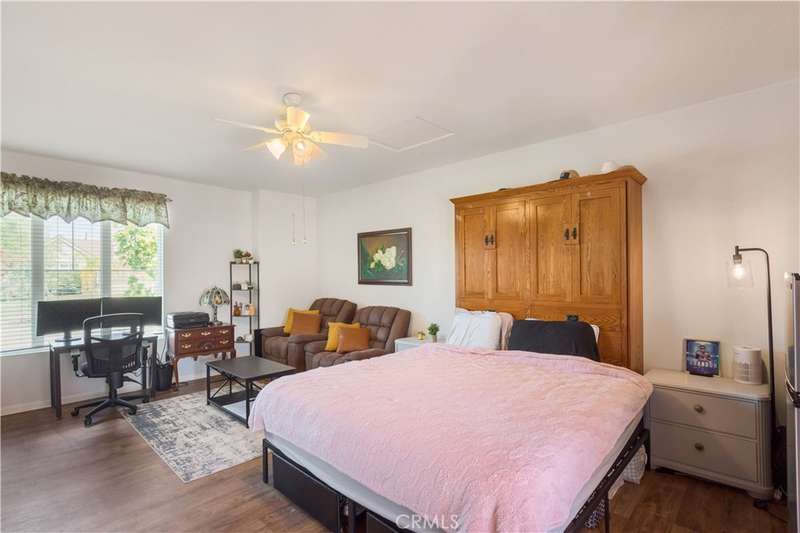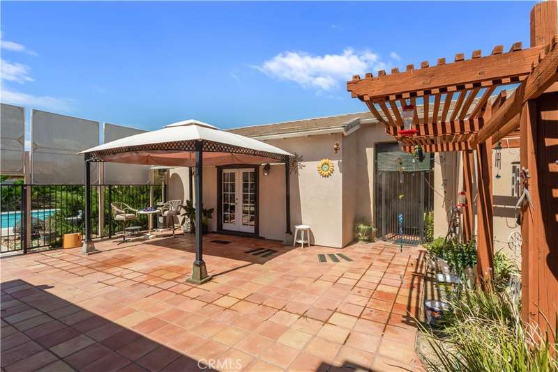 As you enter through the gated front courtyard, you're greeted by a private patio oasis that serves as the gateway to a versatile detached Casita. Spanning approximately 450 square feet, this self-contained unit offers studio-style living with a Murphy bed, private bath, walk-in closet, and a flexible living/sleeping area--ideal for multi-generational living, guest accommodations, a home office, or potential rental income.