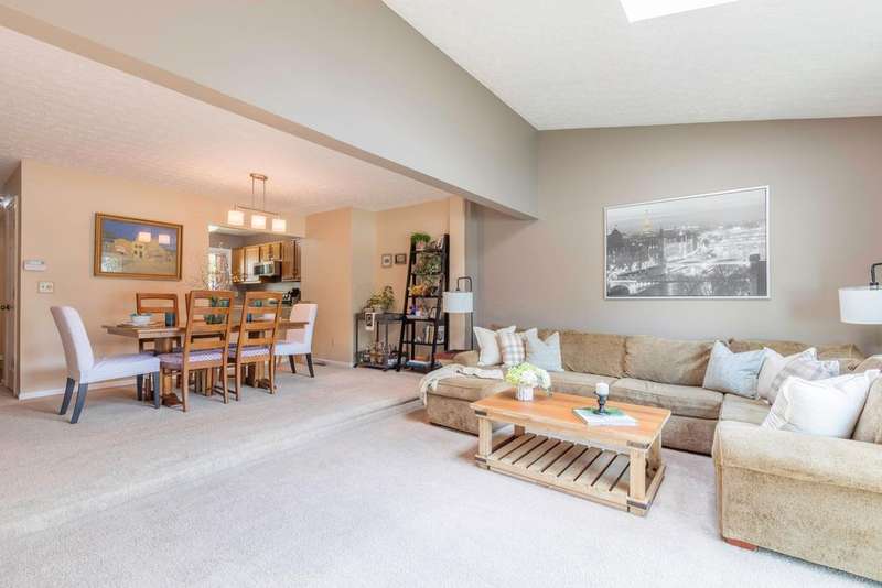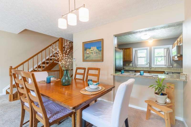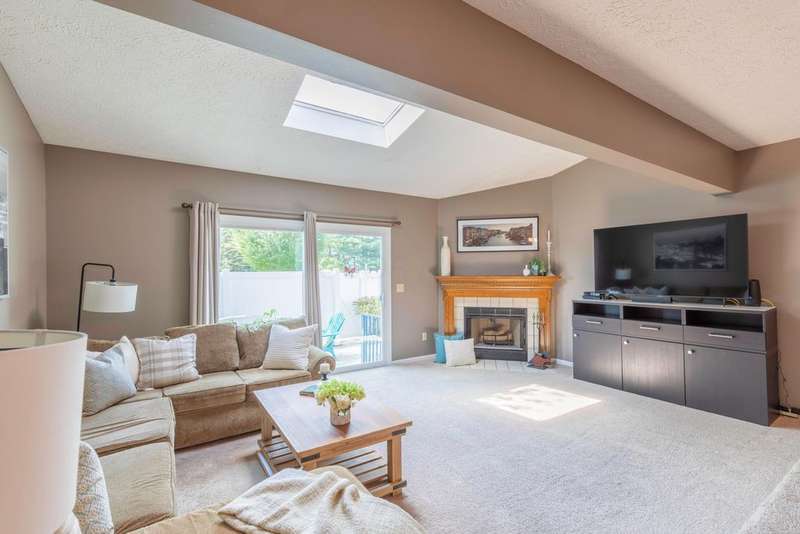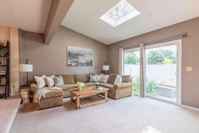 Prepare to fall in love with this incredible condo, brimming with charm and updates, located just moments from the heart of Dublin and Bridge Park. The light-filled Kitchen features ample counter space with granite tops, a full suite of stainless appliances (gas hookup behind stove), new flooring & a convenient pass-through to the dining area where the pendant lighting sets the mood for a relaxing meal. Step down into the spacious, sun-filled Great Room boasting skylights, a cozy FP w/tile surround & walk-out access to your own privacy fenced backyard complete with a concrete patio - perfect for morning coffee or evening unwinding. Upstairs, two generously sized bedrooms with ceiling fans share an updated full bath with fresh new finishes including: cabinetry, counters flooring, lighting, toilet, medicine cabinet, hardware, dual sinks, private vanity & more. Other features include: new windows (2023), solid six-panel doors, main floor updated half bath, primary suite w/large walk-in-closet, partially finished garage & unfinished basement. Condo community installed new roofs & siding within the last 5 years, also includes internet in monthly fee. Stylish, warm and move-in ready! This condo has it all - a true gem in a fantastic location!