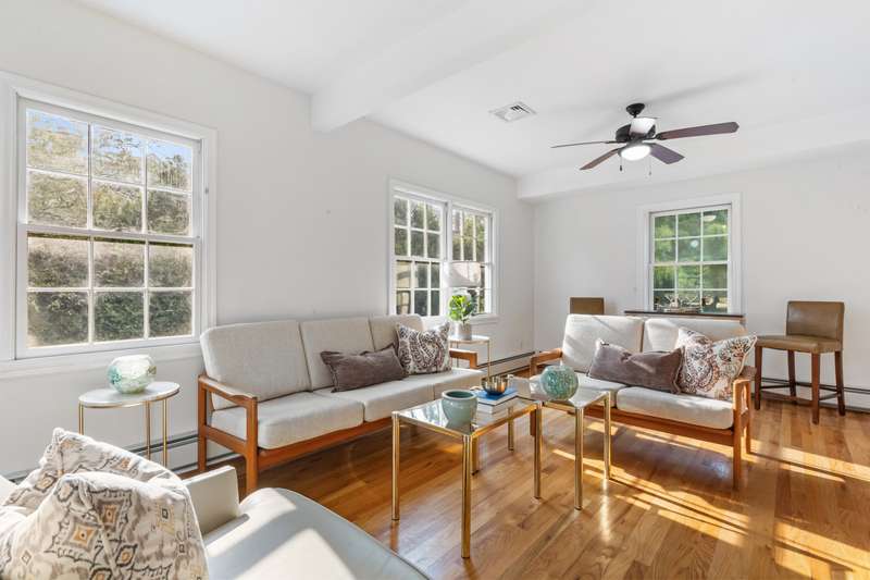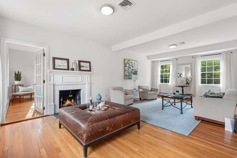 This timeless Colonial, completely rebuilt in 2002, offers sun-filled living with hardwood floors and water views from several rooms. The main level includes a living room with fireplace, formal dining, family room, and a kitchen with island, stainless appliances, quality cabinetry, and ample counter space, plus a mudroom to a wisteria-covered deck. A versatile office/bedroom and half bath complete the first floor. Upstairs is a primary suite with sitting area, walk-in closet, and full bath, plus two bedrooms, a double-sink bath, and laundry. Bonus lower level, two-car garage, private yard, and deeded water access just steps away. Close to Riverside train for easy commuting.