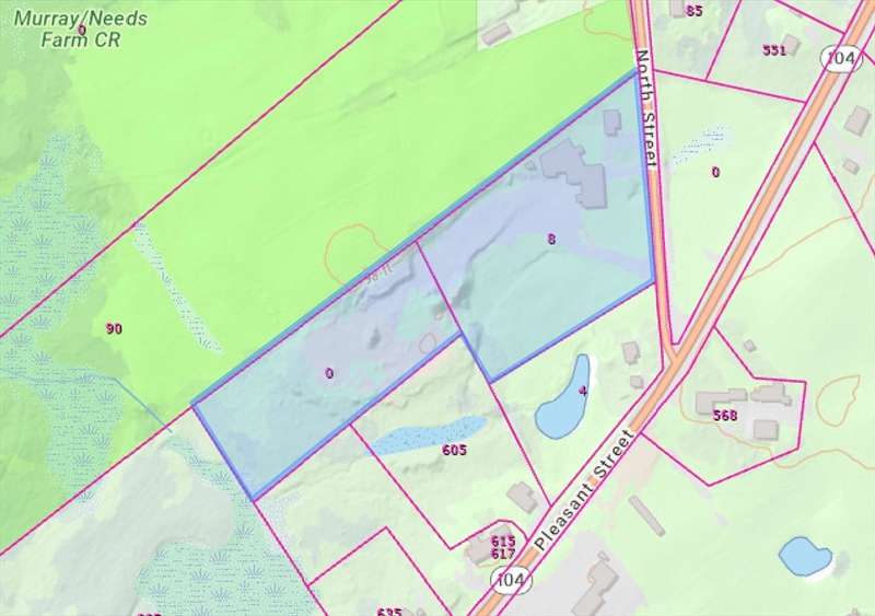 Unbeatable location for this 7+ acre flexible property providing endless possibilities for developers, tradespeople, farmers, etc. Clear visibility from Rte 104. A 4BR/2 Bath Cape style home perfectly tucked to the corner of the property. Massive 5,000+sf accessory building with 2 levels has an add'l approx 2,800+sf open-air roof covered area attached - with separate entrance to the front and rear of the building. Multiple parcels combined total approx 7.59acres of flat, cleared land ready for use of development. Over 400' of frontage provides an owner with an opportunity to carve off the home/building and develop the back land for add'l uses. Amazing opportunity for the right buyer to transform this property to fit their needs. Let us help you build your future here and take advantage of the easy access to Rtes 104, 24, 18, 44, 28, 106.