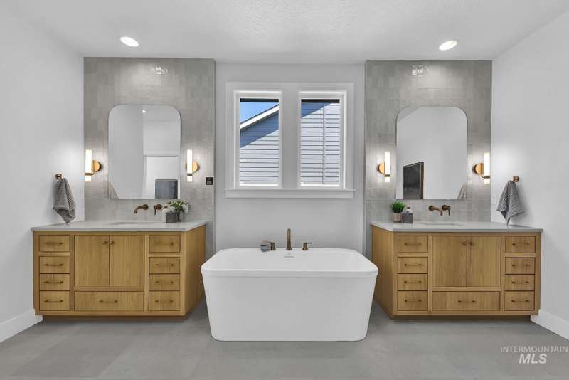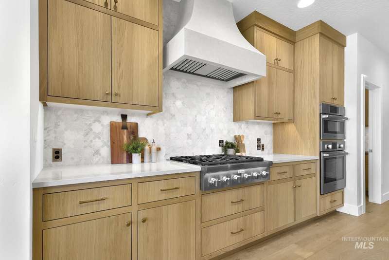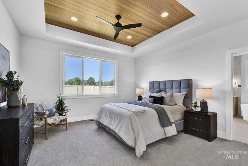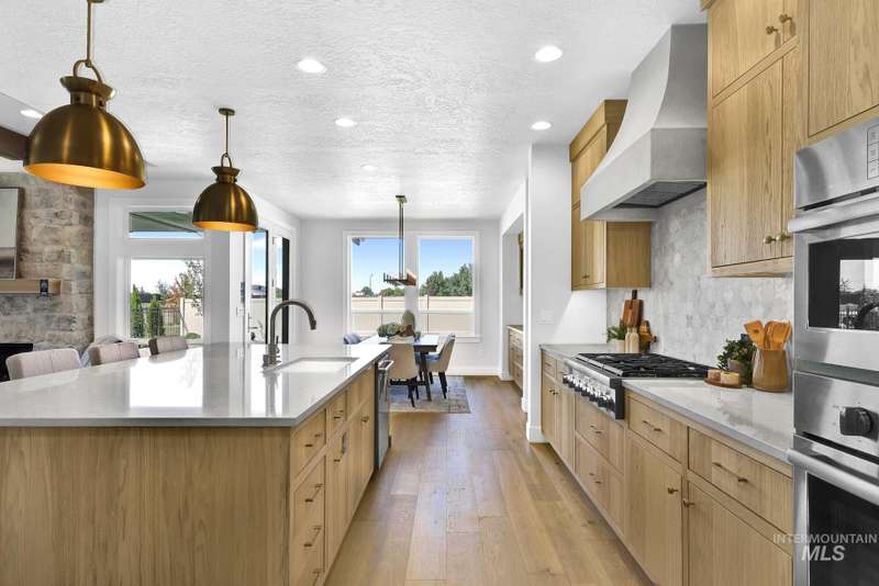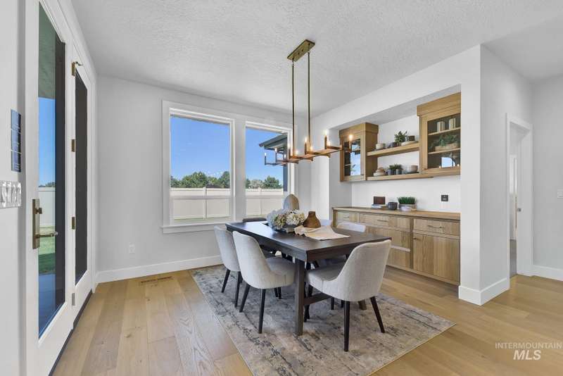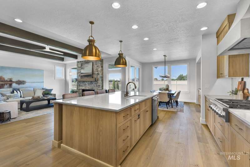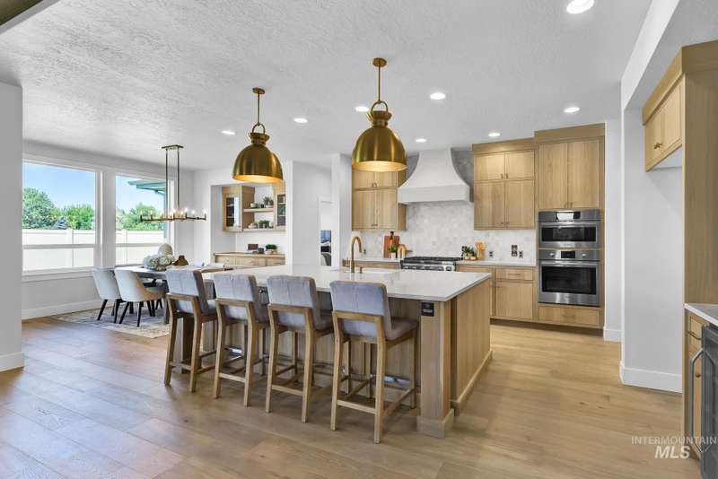 Clearwater Model | Blackrock Homes. Professionally decorated model home in a prime Eagle location! This luxury single-level features an open floor plan with custom “Weathered Oak” cabinetry, quartz island, Bosch appliances (including wine fridge), and a spacious walk-in pantry. Private primary suite includes dual vanities, soaking tub, and oversized walk-in closet. Huge garage w/ a boat/trailer bay measuring 45 ft + 7x14 shop space. Fully landscaped and fenced yard. Community amenities include pickleball courts, dog park, and future POOL (2026). Close to Downtown Eagle, Boise River, Greenbelt, and Foothills. Furnishings not included.