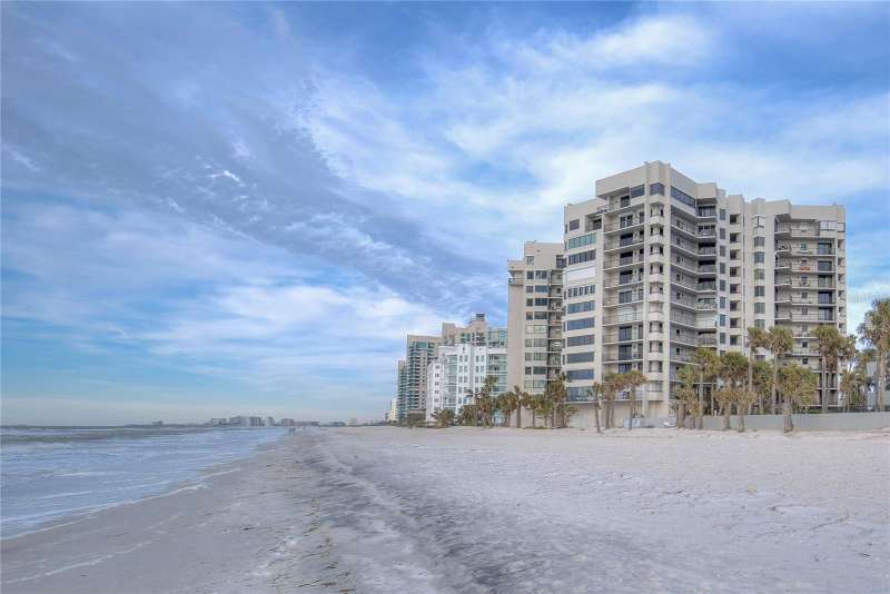 Come live the Florida Lifestyle in the luxury complex known as Dan’s Island located directly on world famous Sand Key Beach. This 3 bedroom with 3 bathroom beach front home is being sold unfurnished so you can decorate your new home in your own personal style. Enjoy your cruise ship views from your living, dining, kitchen, bedrooms, breakfast room and every window or door your want to look through. Step outside on your private beach front covered veranda. You can see the beach from everywhere in this unit. The primary suite has 300 degree views of the beach and the Gulf of Mexico. This unit offers all the space of a home with all the amenities and exterior maintenance you do not have to do maintain anymore. The complex offers two pools, racquetball court, basketball, billiard area, fitness center, community clubhouse with full kitchen for entertaining needs, grills next to the pool, 24 hour security guard, guard gate, and guard shack for all your package deliveries. You also have a full time property manager on site. This complex has everything you may need including its own boat slips for sale or lease if you are a boater or yachter. Call today for your private tour of your new home and the entire complex.