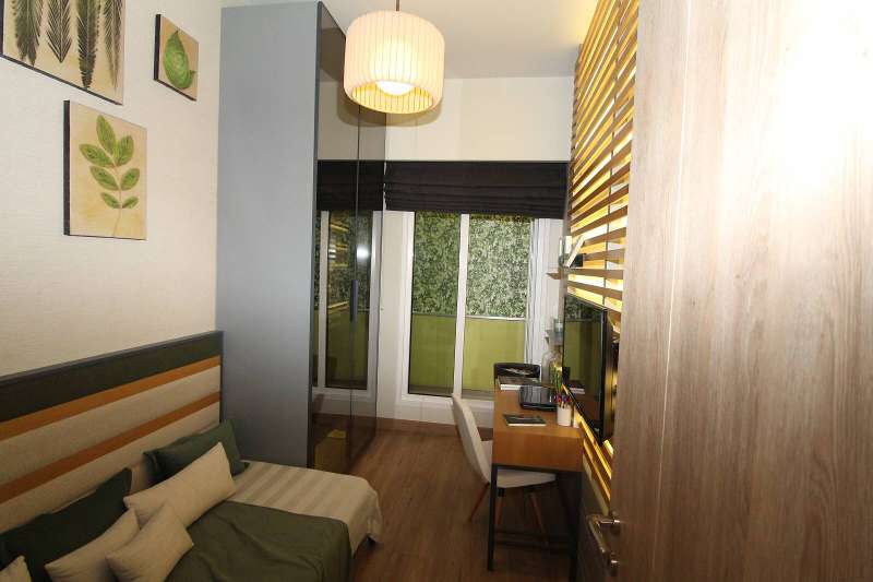 The flats have balconies. They come with optional open-plan or separate kitchens. Some flats include en-suite bathrooms as well. The flats are equipped with a fiber internet connection, wireless internet connection, cable TV, satellite TV, steel exterior door, central heating system, heat insulation, fire and gas alarm, and centralized water heating system.