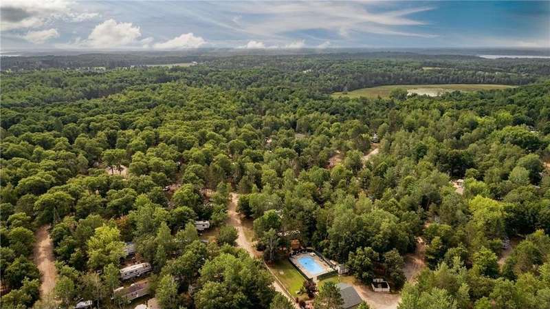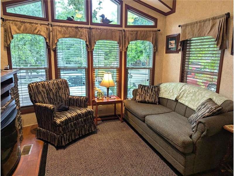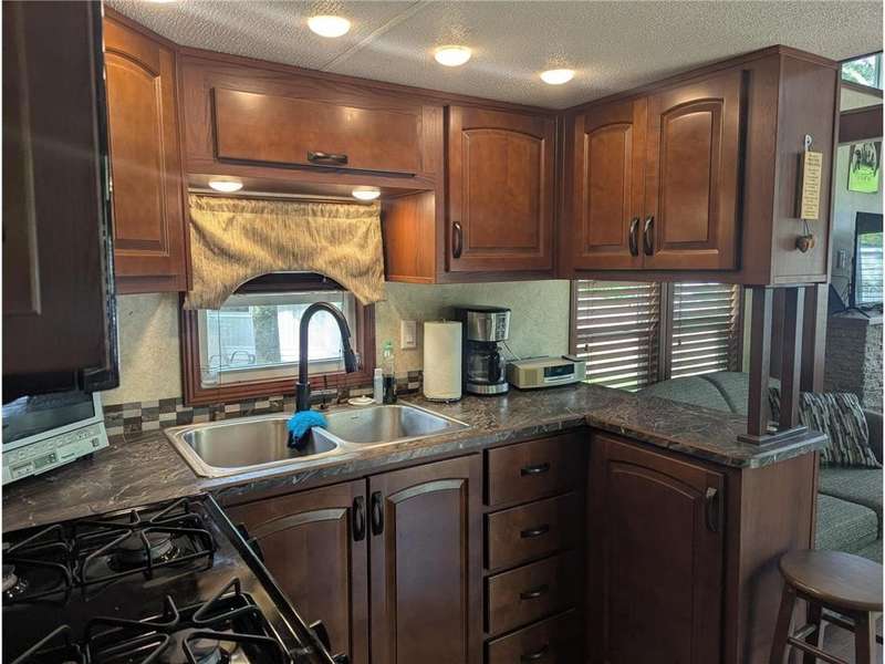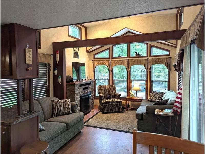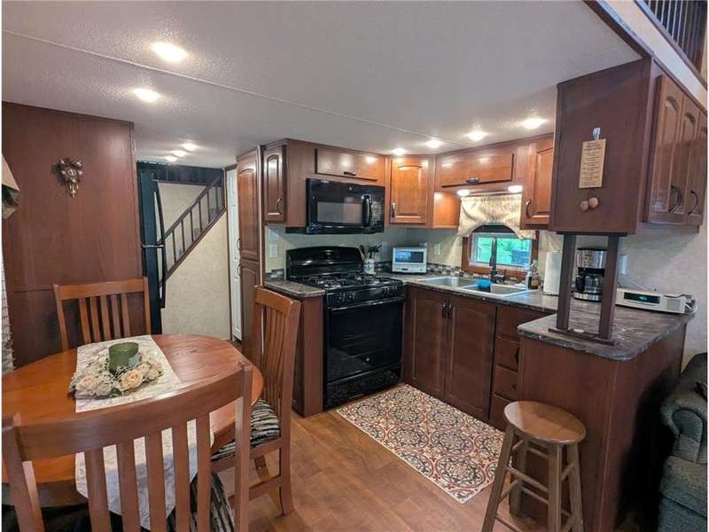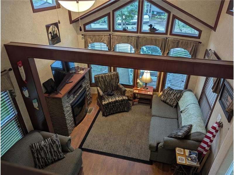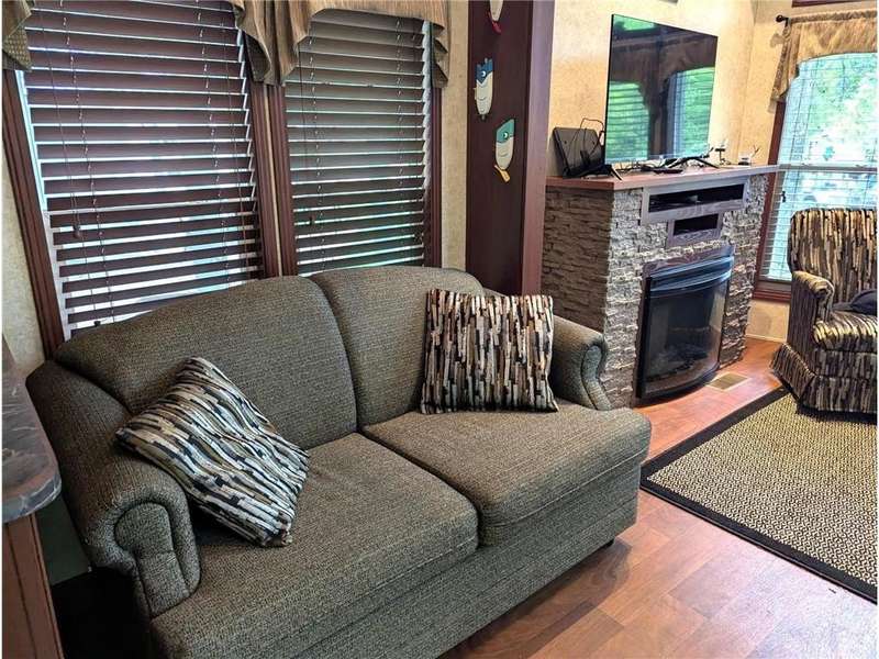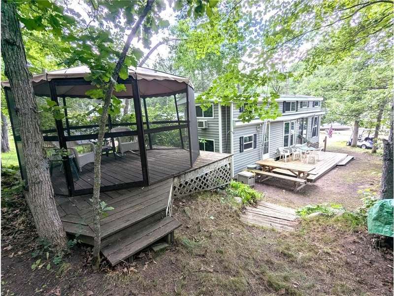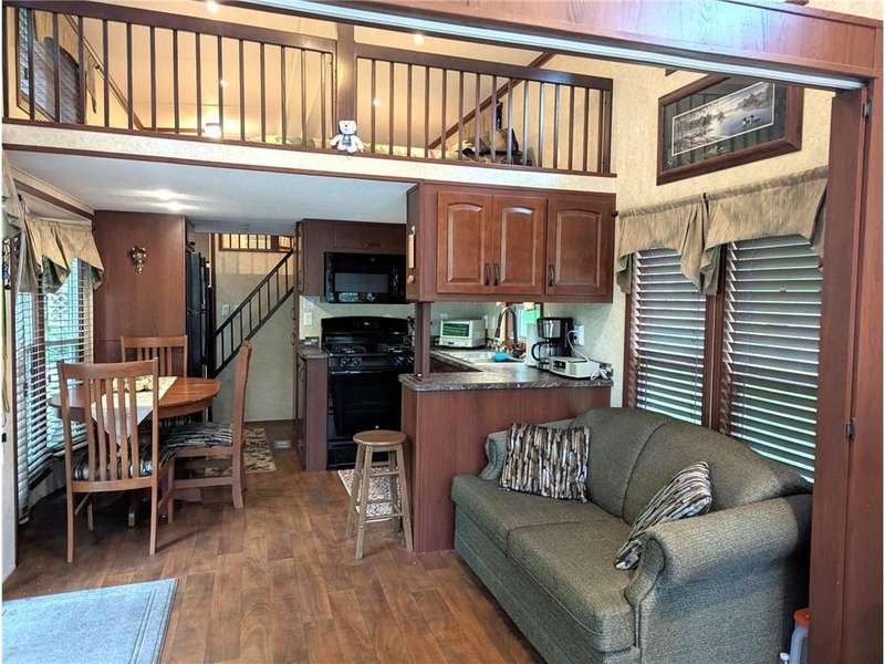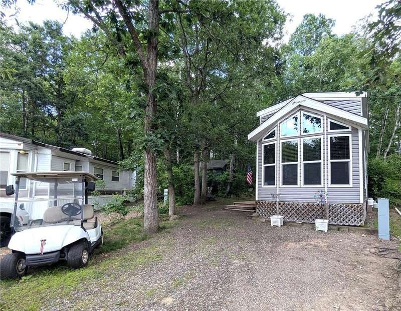 Welcome to this private lot nestled up against the woods in Whitebirch Exclusive RV and Camping Resort. This is a nicely wooded pie shaped lot with the wider living space against the woods. Lot comes with a 2016 Kropf Park Model in excellent condition, Deck alongside of park model and elevated deck to rear of lot that holds a covered screen gazebo, fire pit area, an 8 x 10 Storage Shed and parking for 2 cars. Kropf Park Model has warm wood built-ins and throughout. The main living area has a beautiful electric fireplace with 42" Flat Screen above, a recliner and two pullout couches. The couch near the front of park model has an expanding door to create a second bedroom. Dedicated dining area for four and a pleasing kitchen area with black appliances. Queen bedroom has a built in with 2 closets and drawers. Double loft has two sleeping areas, one with 4ft ceiling that can be used for an office. If you like privacy and a newer park model this is the one for you. Come take a look.
