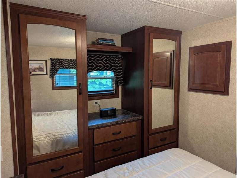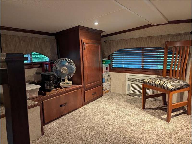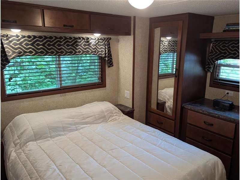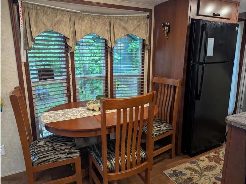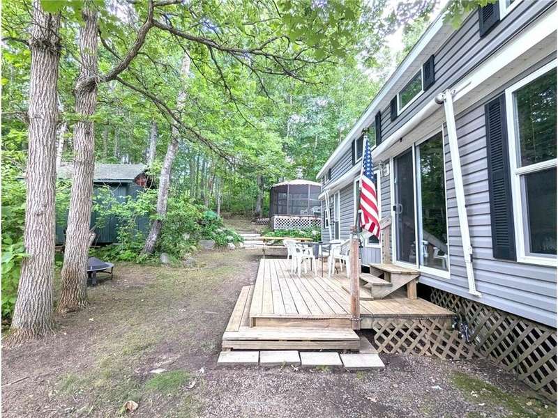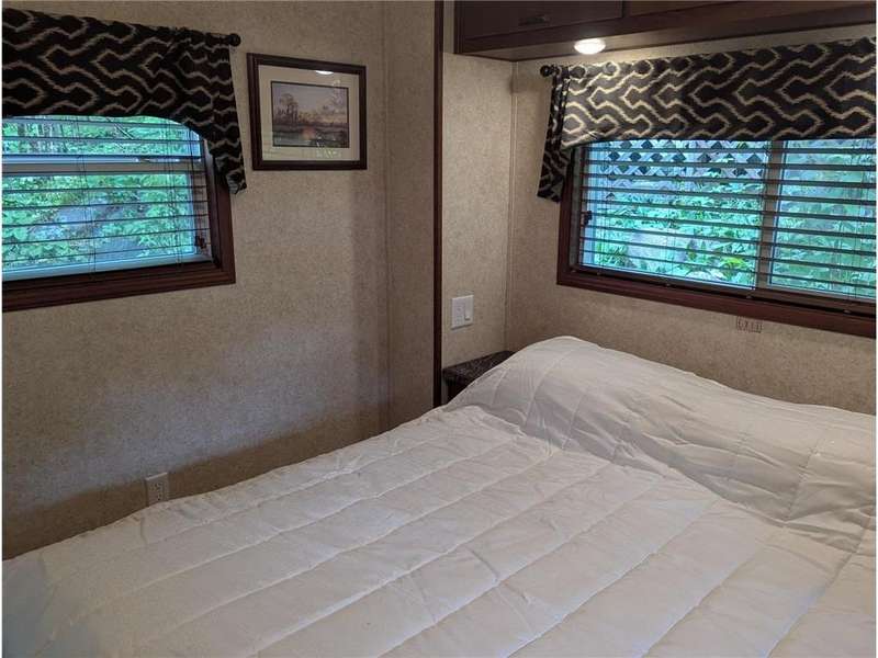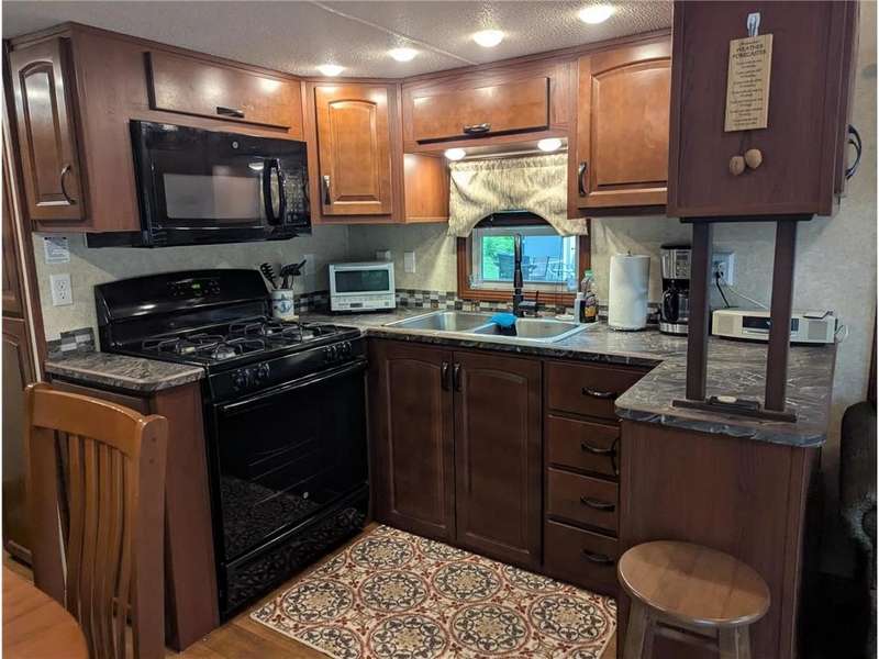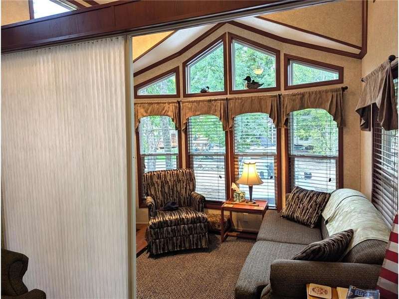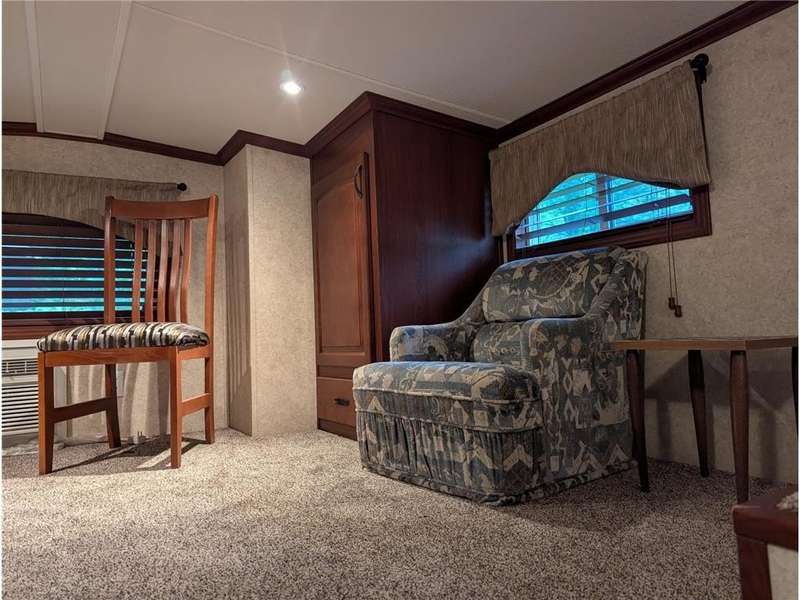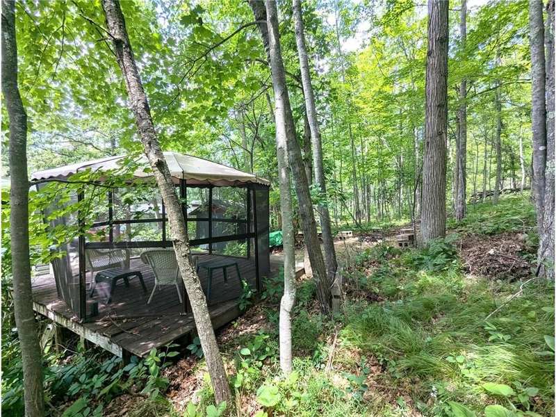 Welcome to this private lot nestled up against the woods in Whitebirch Exclusive RV and Camping Resort. This is a nicely wooded pie shaped lot with the wider living space against the woods. Lot comes with a 2016 Kropf Park Model in excellent condition, Deck alongside of park model and elevated deck to rear of lot that holds a covered screen gazebo, fire pit area, an 8 x 10 Storage Shed and parking for 2 cars. Kropf Park Model has warm wood built-ins and throughout. The main living area has a beautiful electric fireplace with 42" Flat Screen above, a recliner and two pullout couches. The couch near the front of park model has an expanding door to create a second bedroom. Dedicated dining area for four and a pleasing kitchen area with black appliances. Queen bedroom has a built in with 2 closets and drawers. Double loft has two sleeping areas, one with 4ft ceiling that can be used for an office. If you like privacy and a newer park model this is the one for you. Come take a look.