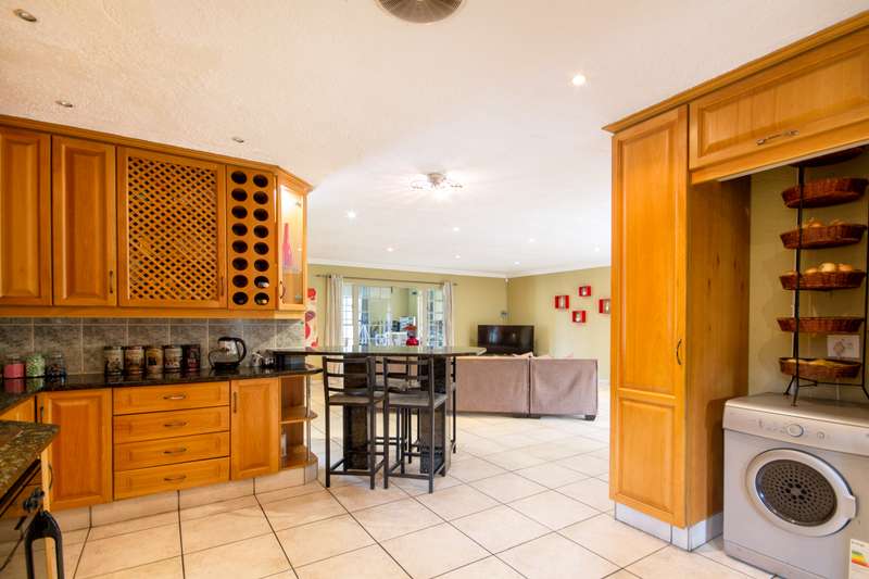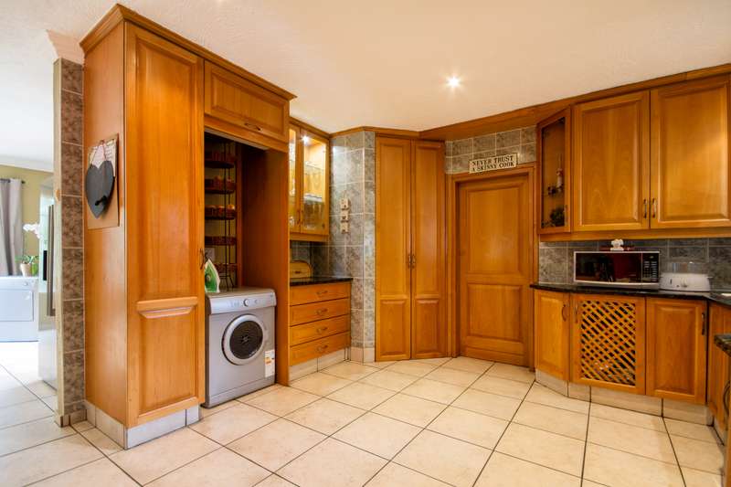 Step into a storybook residence designed for modern family living, where elegance meets functionality. Introduced by a picturesque fountain and a circular driveway, this home is anchored by four wooden garage doors—a grand entrance to an extraordinary space. Inside, three expansive bedrooms and two bathrooms (including a main en-suite) offer comfort and privacy. The main bedroom, thoughtfully positioned for maximum seclusion, boasts ample storage. An inviting entrance hall leads into a sensational open-plan dining and living area, centered around an indoor pool that bathes the space in natural sunlight from a glass roof—waiting for your creative touch to bring it to life. Step outside to a lush wrap-around garden, a haven for birdlife, complete with a covered entertainment area and storage room—an ideal setting for relaxation. The sprawling chef’s kitchen is an absolute showstopper, featuring a gas hob, under-counter oven, extractor fan, granite countertops and a convenient scullery Additional features include: • Built-in domestic accommodation • A well-positioned study, perfect for a home office, nestled under towering trees with laminated flooring • A private tiled flatlet with a kitchen, en-suite bathroom, and charming living space • A full alarm system and electric fencing • Installed Fibre for seamless connectivity Situated in the heart of Radiokop, close to all amenities, this remarkable home won’t stay on the market for long. Call us today for an exclusive viewing—without a ticket, you can’t win the race!