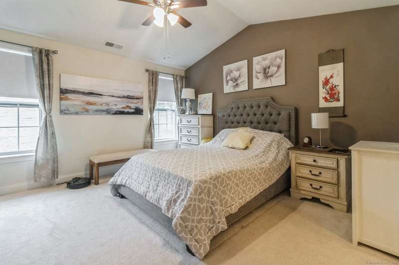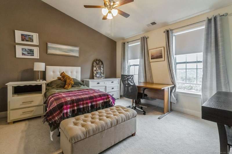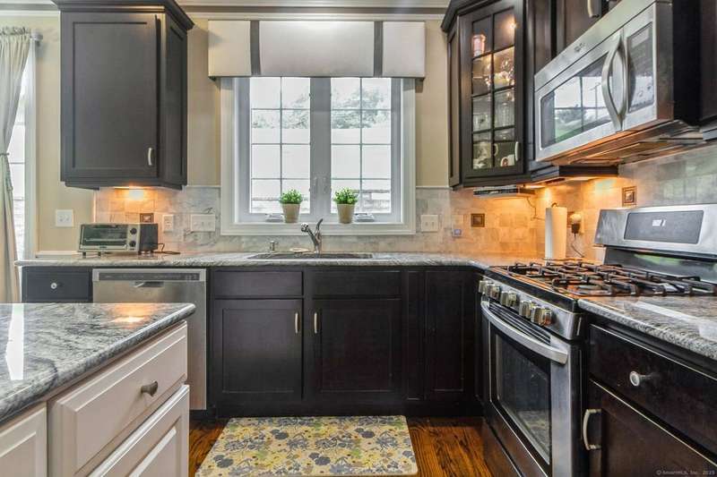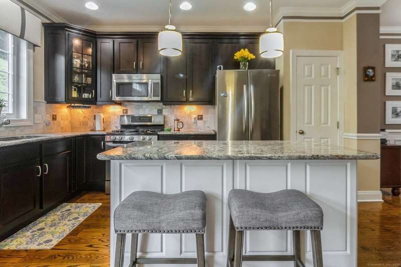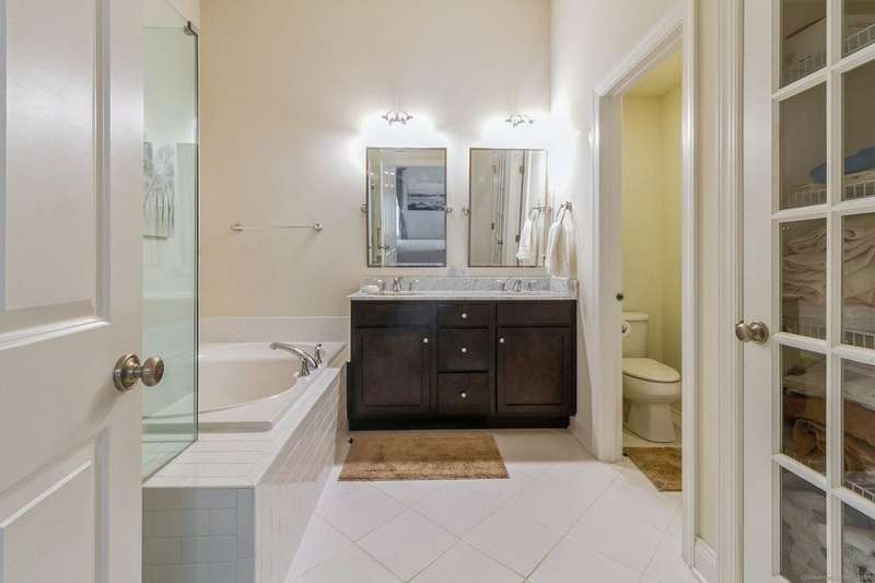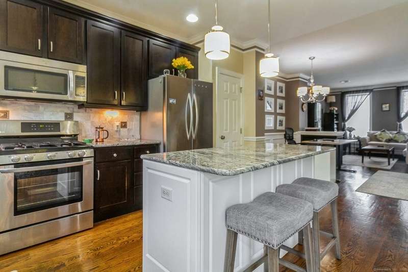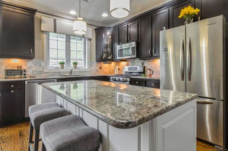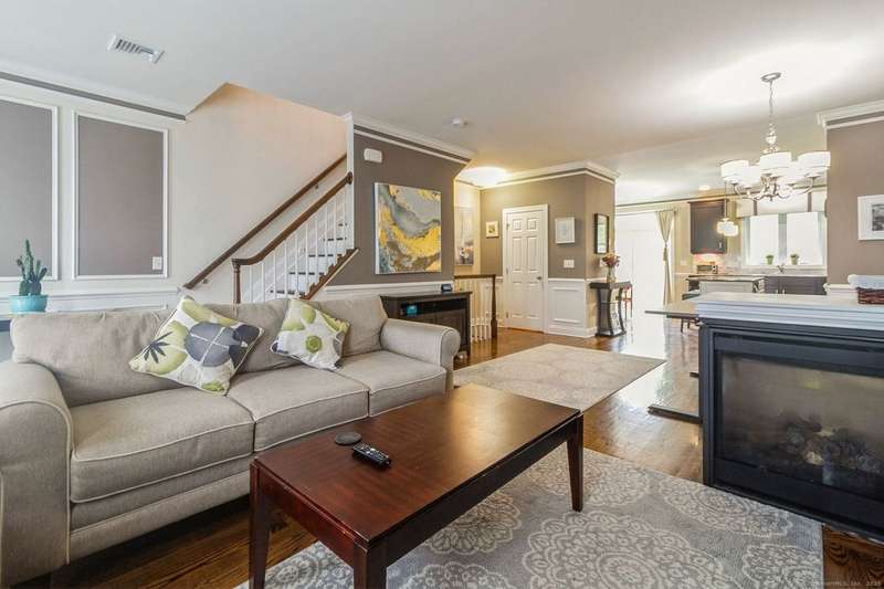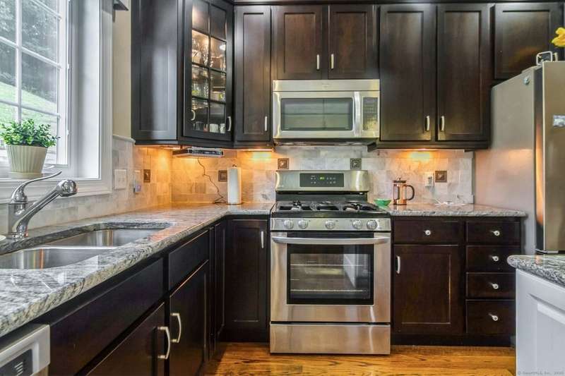 This light and bright townhouse is not to be missed! Many architectural upgrades throughout. The open concept floor plan has that "wow" factor with a large living room (providing unobstructed views of the hills), dining room combination and an eat-in kitchen offering granite counters, upgraded appliances and a slider to a private back deck. On the upper level are two more bedrooms, one primary with ensuite bathroom with a tub and a shower. Laundry is conveniently located there. The unit has a two car tandem garage and is near additional visitor parking. Come and enjoy the lifestyle of sought-after Rivington with amenities such as heated pools (indoor and outdoor), a gym with sauna, Clubhouse with media and party room, tennis courts and childrens' playground. Conveniently located near highway, shopping mall, and local stores.