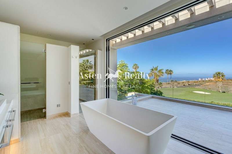 This modern villa is unique and exclusive, not only for its high standard architecture, but also for its unbeatable location in the Golf of Costa Adeje. The views of the golf, the ocean and La Gomera island make this villa very special. The villa is modern, but at the same time has warm and pleasant colors, marble floors and wooden details are incorporated in the design of this wonderful villa.