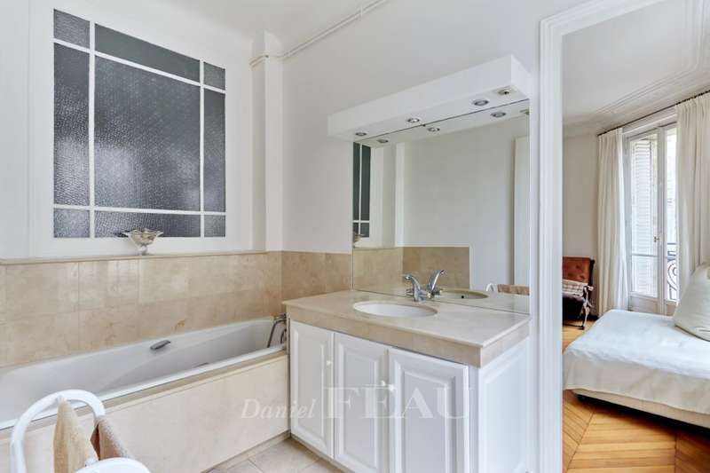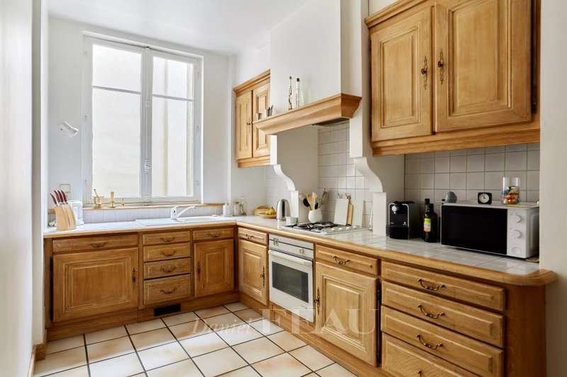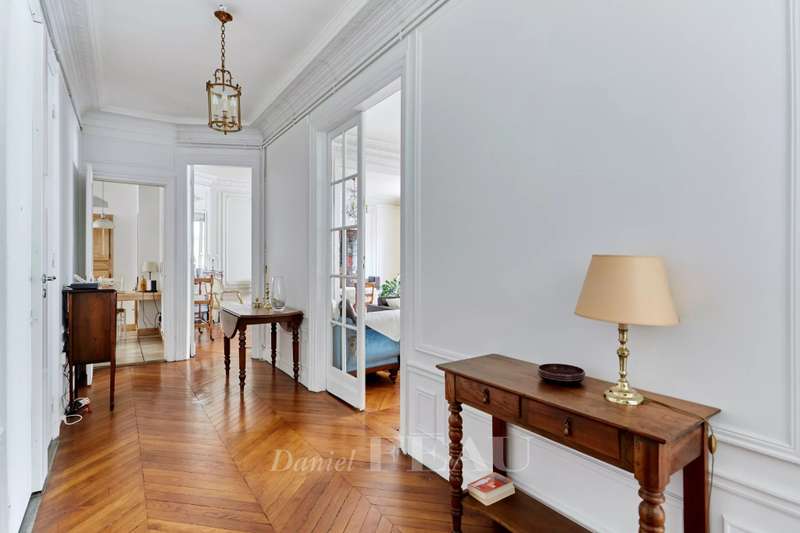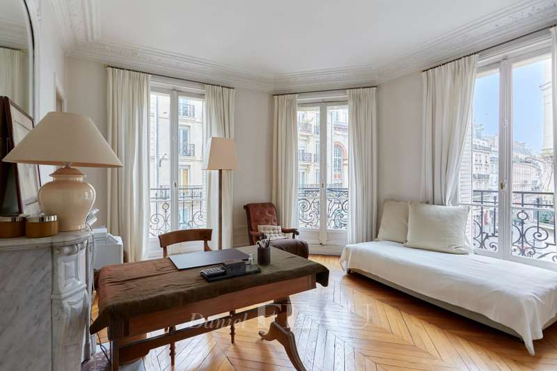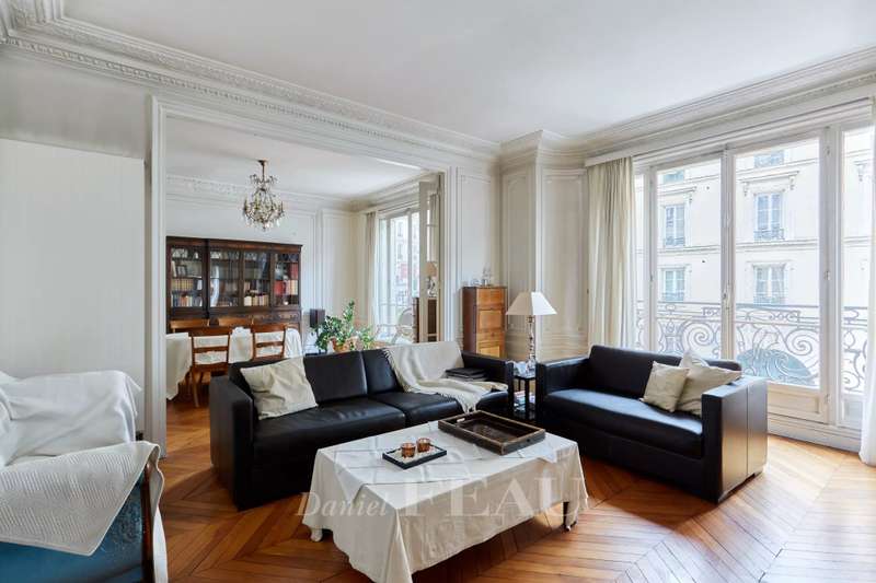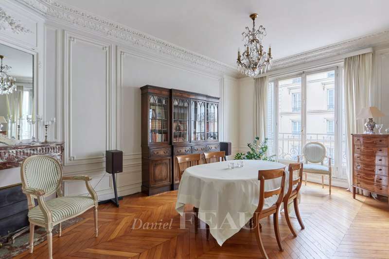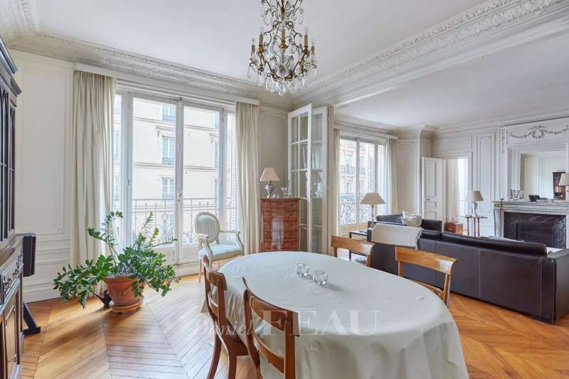 Marché Saint Quentin neighbourhood. This sunny south and east facing apartment opening onto balconies is on the 2nd floor of a fine mid 19th century building with a lift. An entrance hall leads to a double living/reception room, a kitchen with dining facilities, three spacious bedrooms, a bathroom, and a utility room or possible shower room. Period features include high ceilings. With two cellars. Refurbishment is required to exploit the full potential.