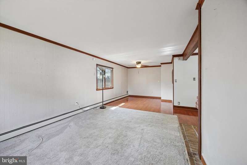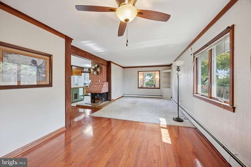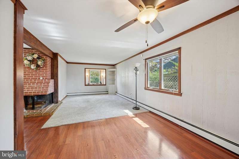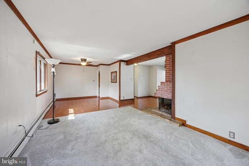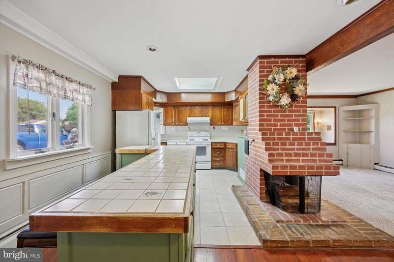 This expanded 3-bedroom ranch combines modern updates with a flexible single-level layout. A bonus room with a window, located off one of the bedrooms, adds versatile space-ideal for a walk-in closet, home office, or sitting area. The primary suite features a private full bath and a generous closet with extra storage. The kitchen features a large island, a corner sink with windows, and a skylight for natural light. It opens to the living/dining area, which includes a charming fireplace (capped when purchased). Down the hall are the other two bedrooms, one with double doors and a skylight. A separate laundry/mudroom includes a washer/dryer combo, utility sink, and direct access to the side yard. Outside, the home offers a spacious backyard, large front patio, newer roof (2017), and 4-car driveway. An above-ground oil tank was newly installed in 2023. Move-in ready and waiting for its new owner - schedule your showing today!