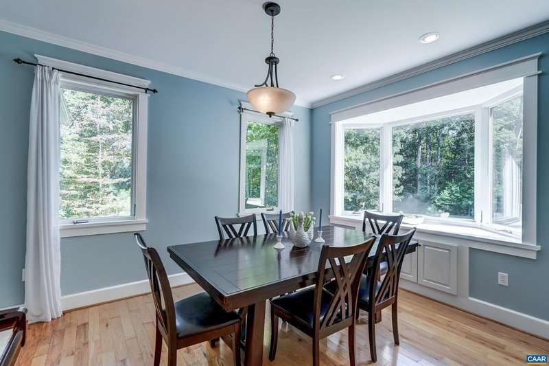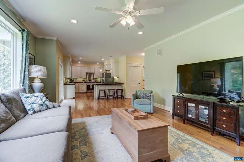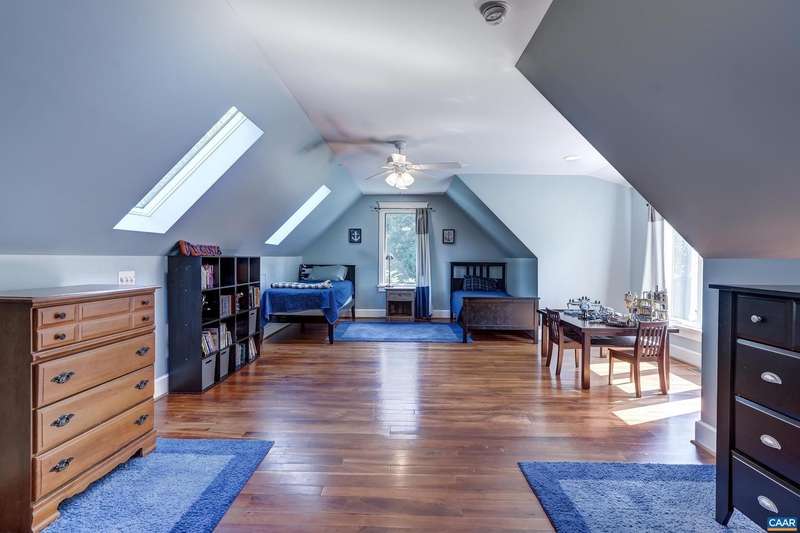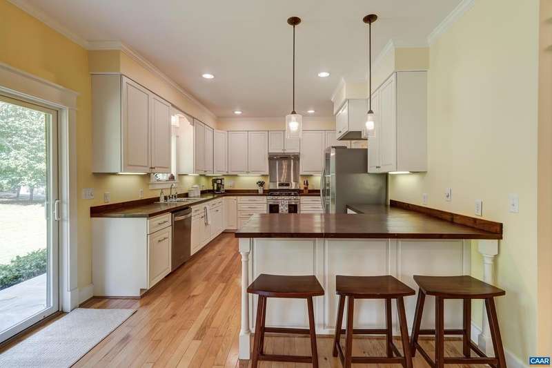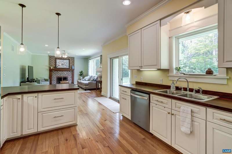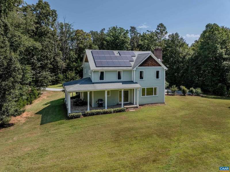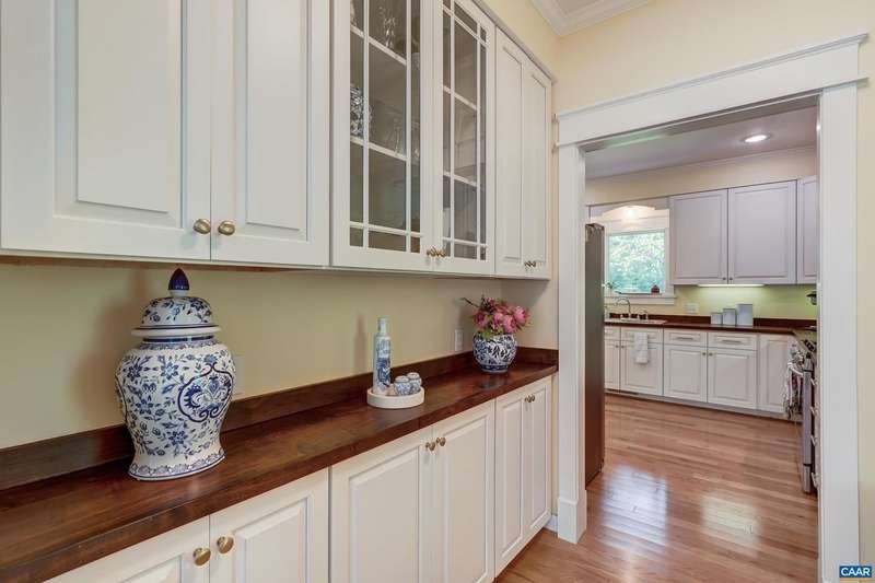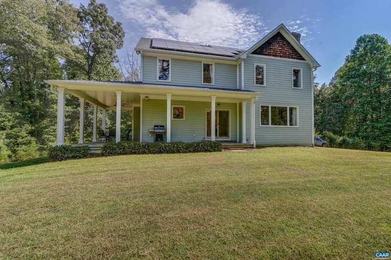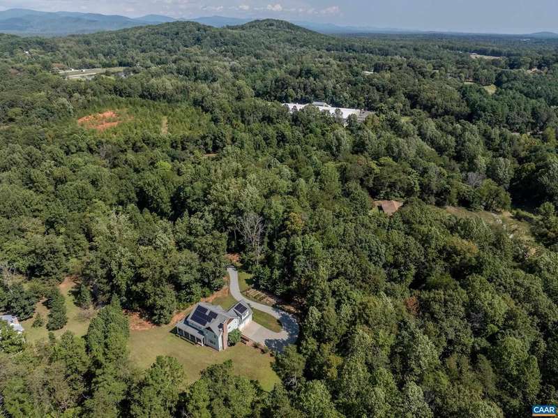 At the end of a meandering drive that winds through woods before breaking out in the open, is a remarkably well constructed, thoughtfully designed & detailed 4 bed/4.5 bath craftsman farmhouse in the heart of Ivy. The 4+ acre parcel provides expansive, level lawns, seasonal mountain views from covered blue stone porches, a creek & woods to explore. Gourmet kitchen, butler's pantry & service area feature counters made of walnut harvested on site and hardwood flooring throughout the home stuns. You'll love the 2 wood-burning fireplaces in living room and primary bedroom, wrap-around porch off kitchen/family room. Each bedroom features a private ensuite bathroom and the home features a huge finished basement w/ full bath, wine cave, lots of conditioned storage, and rough-ins for sauna and kitchenette. Nature lovers will love the abundant gardens with fig trees, grapevines, apiary, and more! Solar panels and geothermal heat pump make this home so energy efficient. Under 10 mins to Charlottesville & moments to charming Ivy amenities.,White Cabinets,Wood Counter,Fireplace in Great Room,Fireplace in Master Bedroom