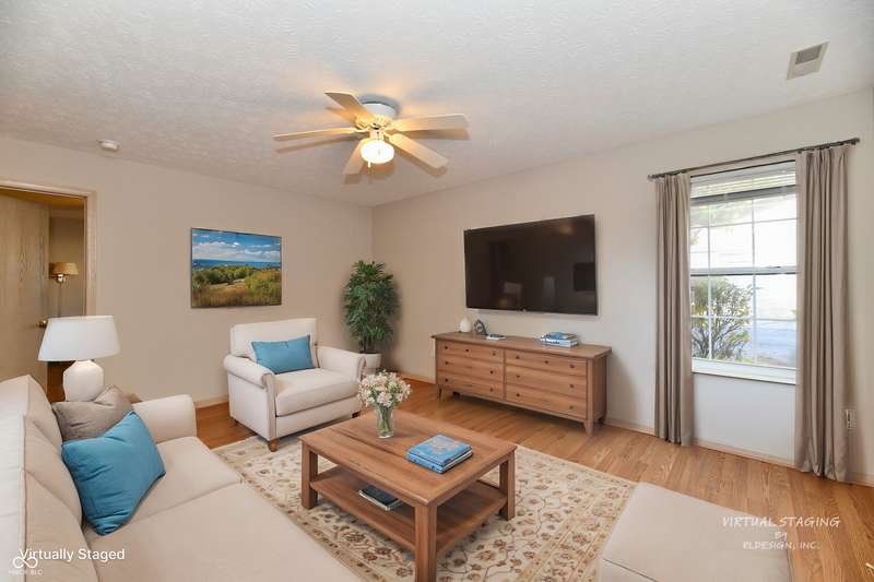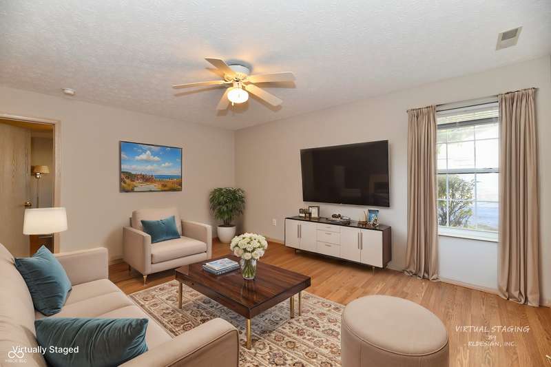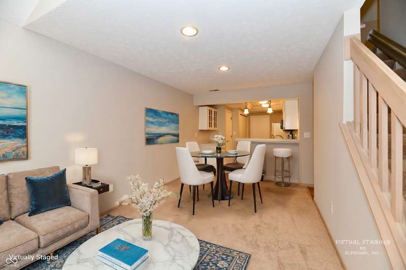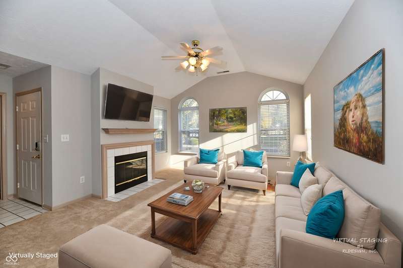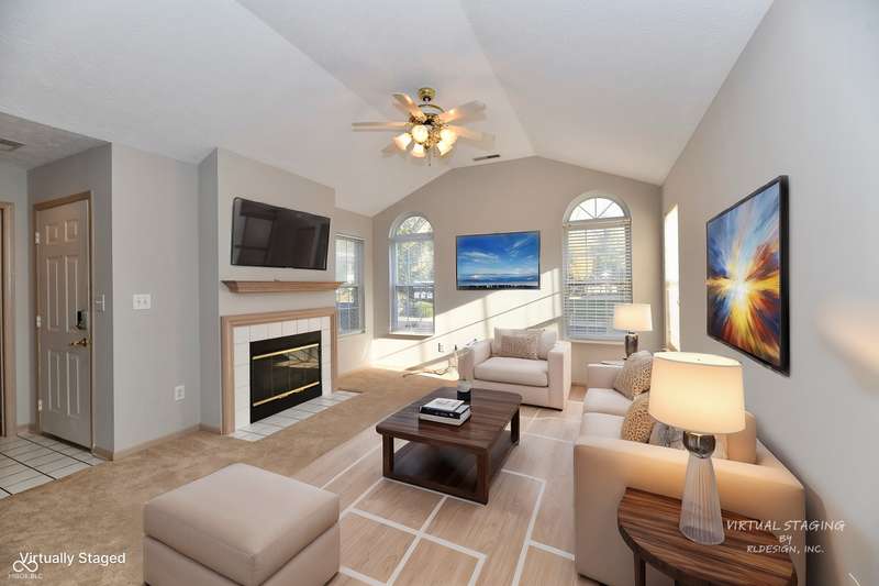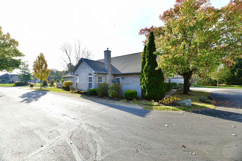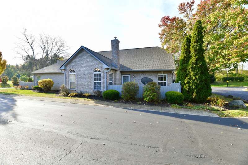 The low-maintenance lifestyle of the Villas of Quail Run is waiting for you at this spacious 2 bedroom, 2.5 bath original owner condo in Franklin Township. Enjoy the fenced front patio area which is surrounded by a park like setting with a nearby gazebo and pond. Lots of green space close by to enjoy the outdoors. Hosts your guests in the open concept great room with a gas fireplace and raised ceilings. Plenty of room to enjoy eating in the dining room or at the breakfast bar. Kitchen features pantry and abundant cabinet space. Primary bedroom on main level is spacious with large walk in closet, and full bath with walk in shower. The den/office area can be whatever you need, second entertaining space or a study. The upper level features a large bedroom area with an enormous closet/walk in storage area and full bath. Attached 2 car garage is finished with laundry sink, pull down attic access and extra storage space. Neighborhood HOA includes lawncare, snow removal, community pool, clubhouse, and exterior maintenance. Roof replaced in 2022, HVAC unit 2023, Fresh paint 2024