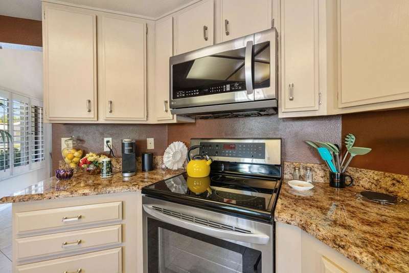 Welcome to resort-style living in the heart of the world-famous La Quinta Resort community! This beautiful 3-bedroom, 4-bathroom condo, including a detached casita, offers inviting comfort and exceptional privacy! Ideally located as an end unit next to the tennis courts, the home features a fully enclosed courtyard separating the casita from the main residence--perfect for guests or extended stays. Inside the main home, you'll find large-format tile flooring throughout, vaulted ceilings, plantation shutters, and an abundance of natural light through ample windows. The kitchen boasts granite countertops, stainless steel appliances, and a welcoming open layout. Enjoy serene southwest-facing mountain views from your spacious rear patio, ideal for morning coffee or sunset relaxation. Experience the best of desert resort living just steps from tennis, golf, dining, several community pools and spas spread throughout the community and world-class amenities within the prestigious La Quinta Resort development! Offered partially furnished.